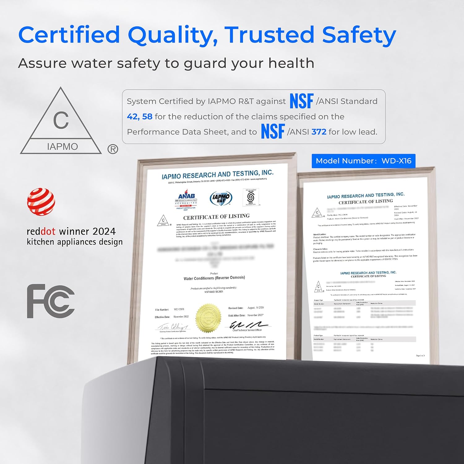- [ Trusted Certification ] Tested and certified by IAPMO R&T against NSF/ANSI 42 & 58 & 372 standard, and tested by SGS to reduce harmful substances.