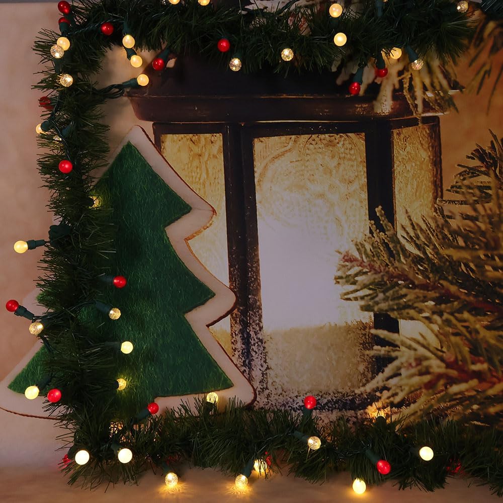 G15 Pearlized Red White Christmas Lights - 19Ft 70 LEDs Waterproof Connectable LED String Lights Indoor/Outdoor Globe Lights for Tree, Halloween Decoration, Holiday Party
