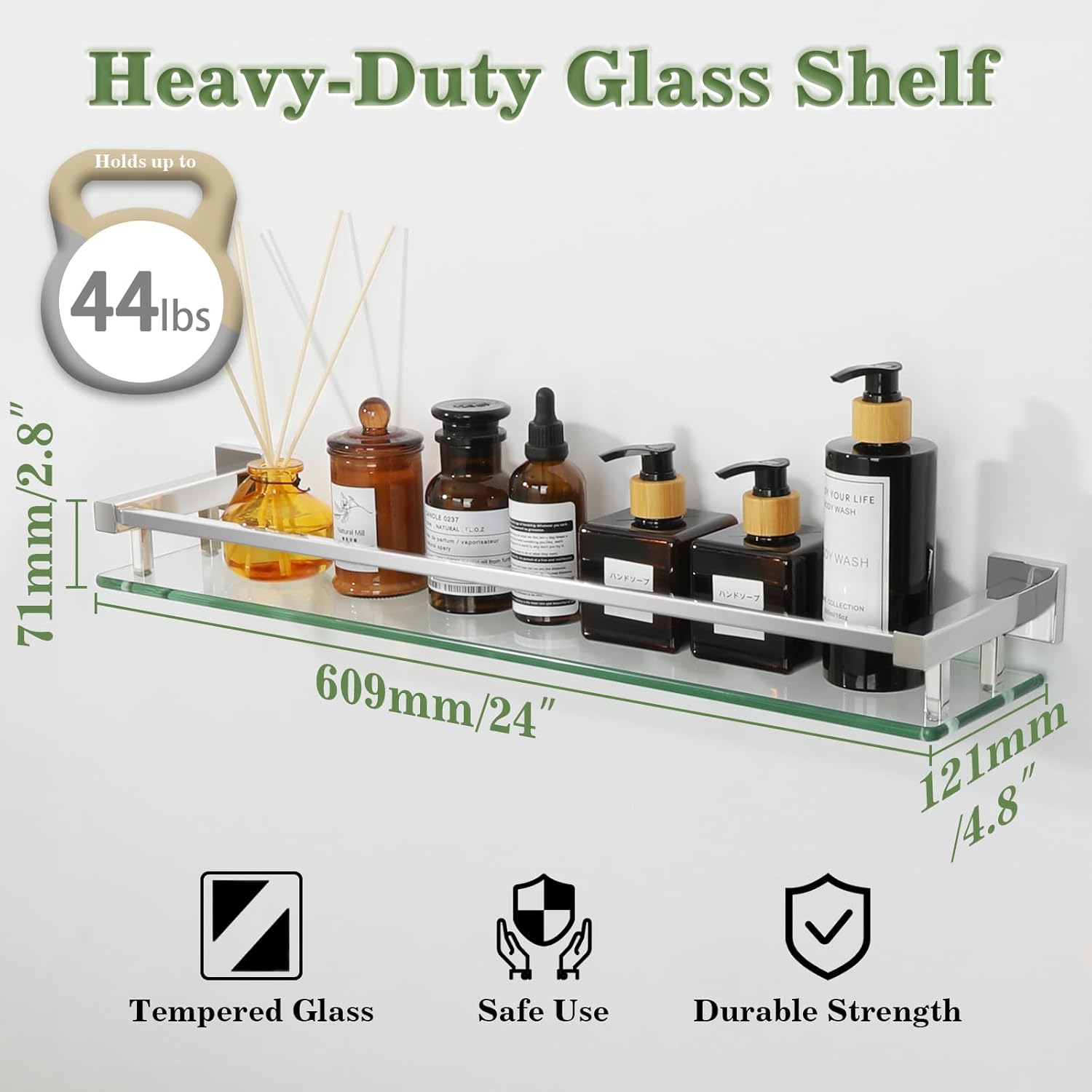 - TEMPERED GLASSļ¼Our glass shelves are made with ultra-strong 8mm tempered glass and SUS304 stainless steel, ensuring a weight capacity that far exceeds standard shelves for reliable support