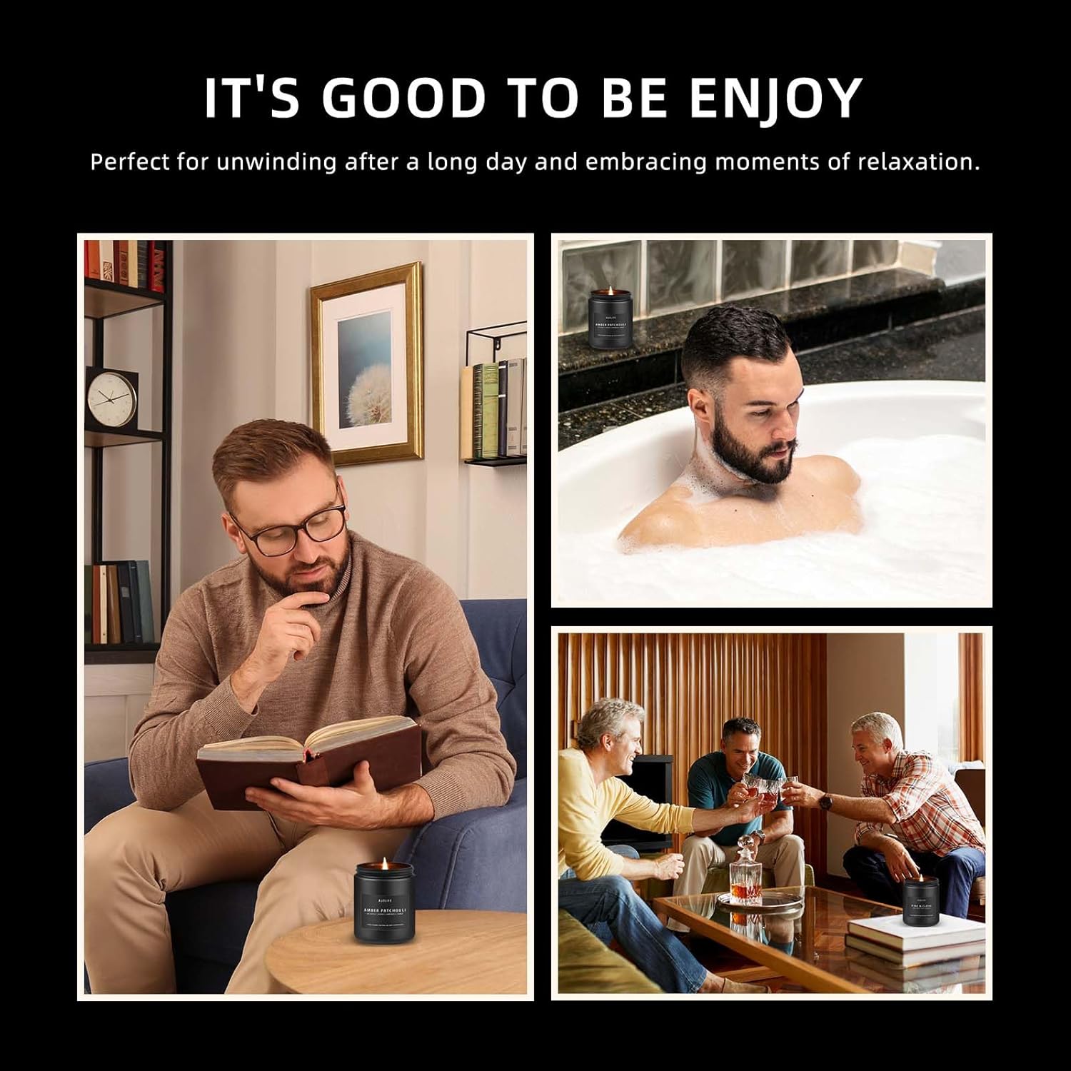 - Enhancing the Home DƩcor: Beyond their fragrance, scented candles can add aesthetic appeal to any space. Men who appreciate a well-designed living environment can incorporate scented candles as part of their home dƩcor. Candles in black jar and minimalist designs can seamlessly blend into a masculine aesthetic, enhancing the overall ambiance of the room