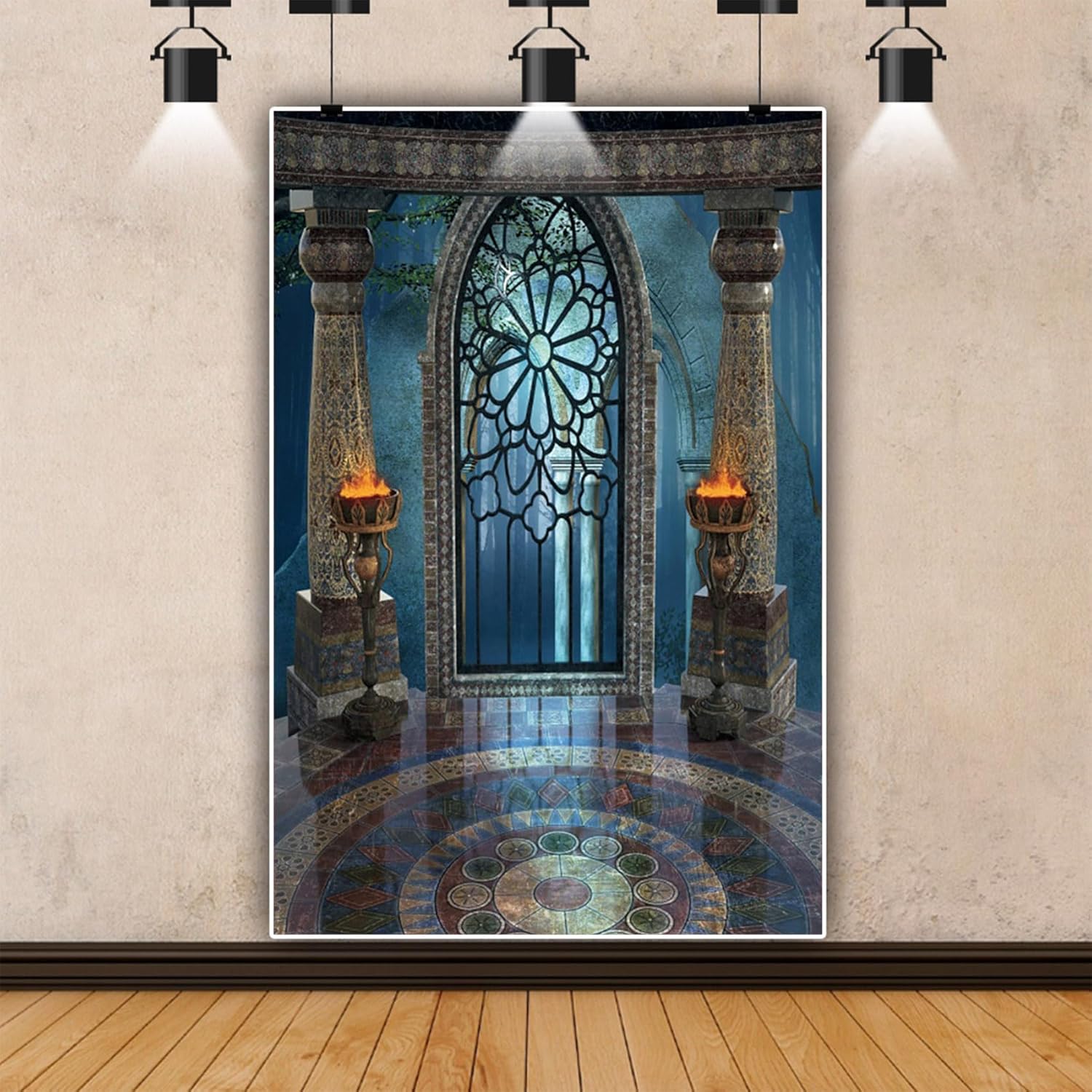 Renaiss 8x10ft Medieval Castle Backdrop for Photoshoot Portrait Pillar Torch Gothic Stone Tower Ancient Old Fortress Interior Photography Background Halloween Party Decor Wallpaper Photo Studio Props