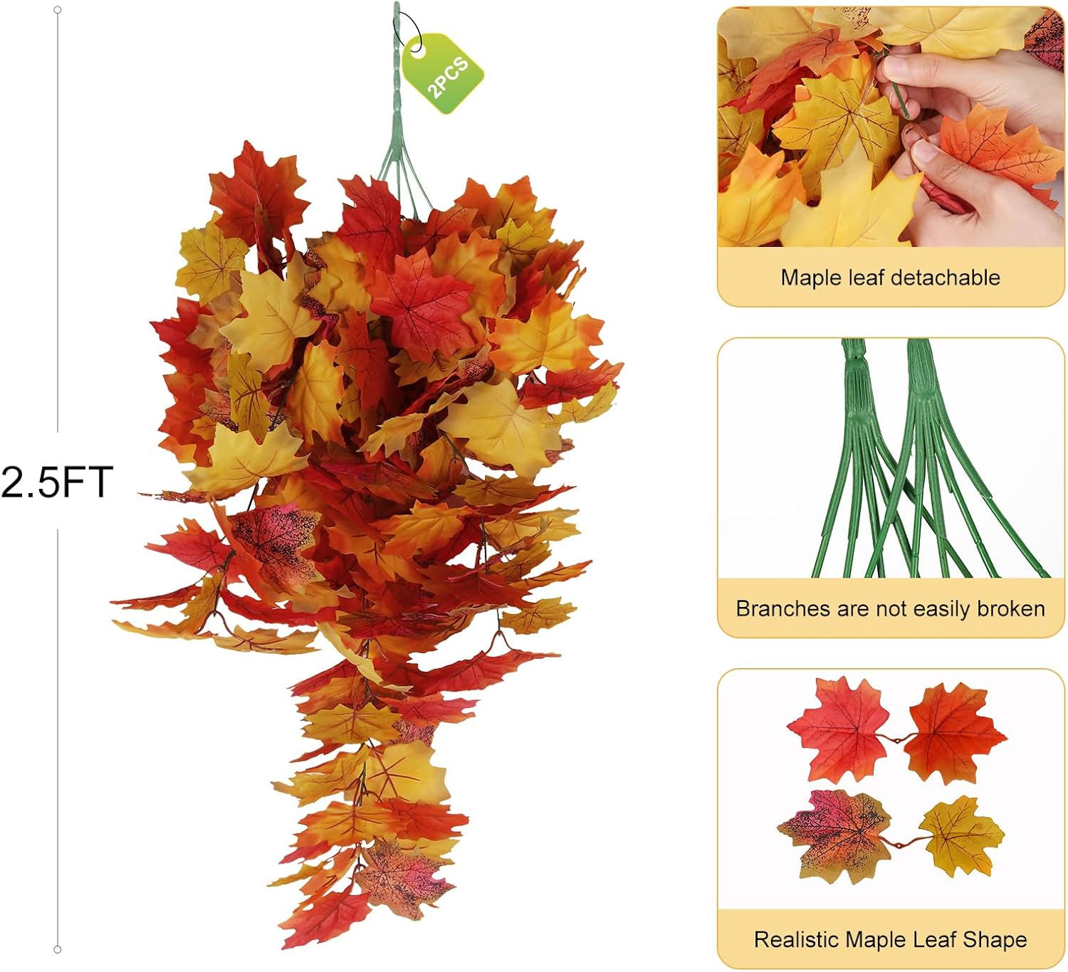 - [Realistic Fall Hanging Maple Plants]The faux fall hanging plants has realistic steas and the leaves texture is clear that look like real leaves.Lifelike artificial hanging maple vines arrangement are match everywhere of your home,adds a touch of nature to your space, perfect for your autumn decoration.