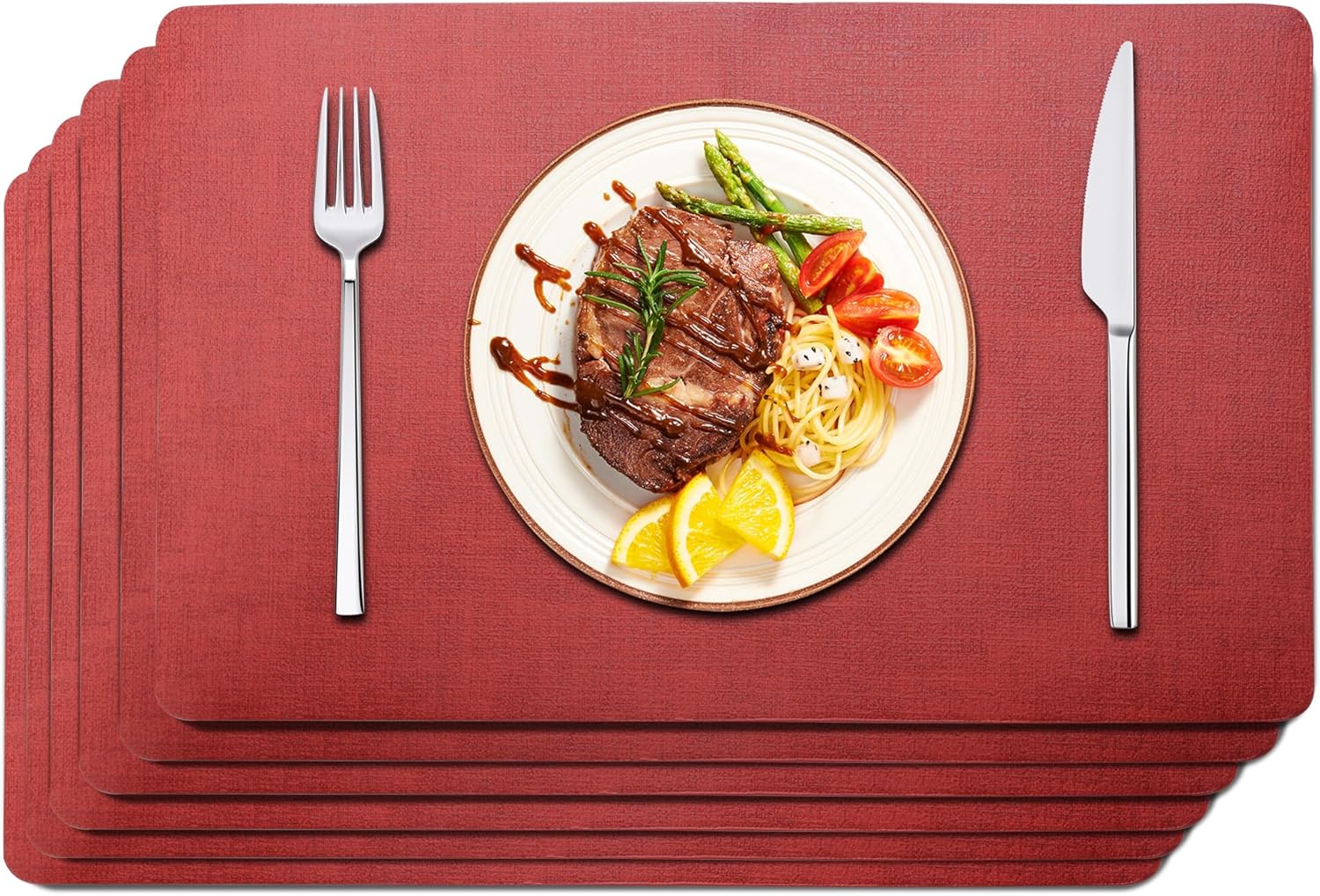 Maxpearl Faux Leather Placemats Set of 6 - Waterproof - Wipe Clean - Heat Resistant - Anti Slip Dining Table Place Mats, Suitable for Indoor & Outdoor Use, 17’’x12’’, Red