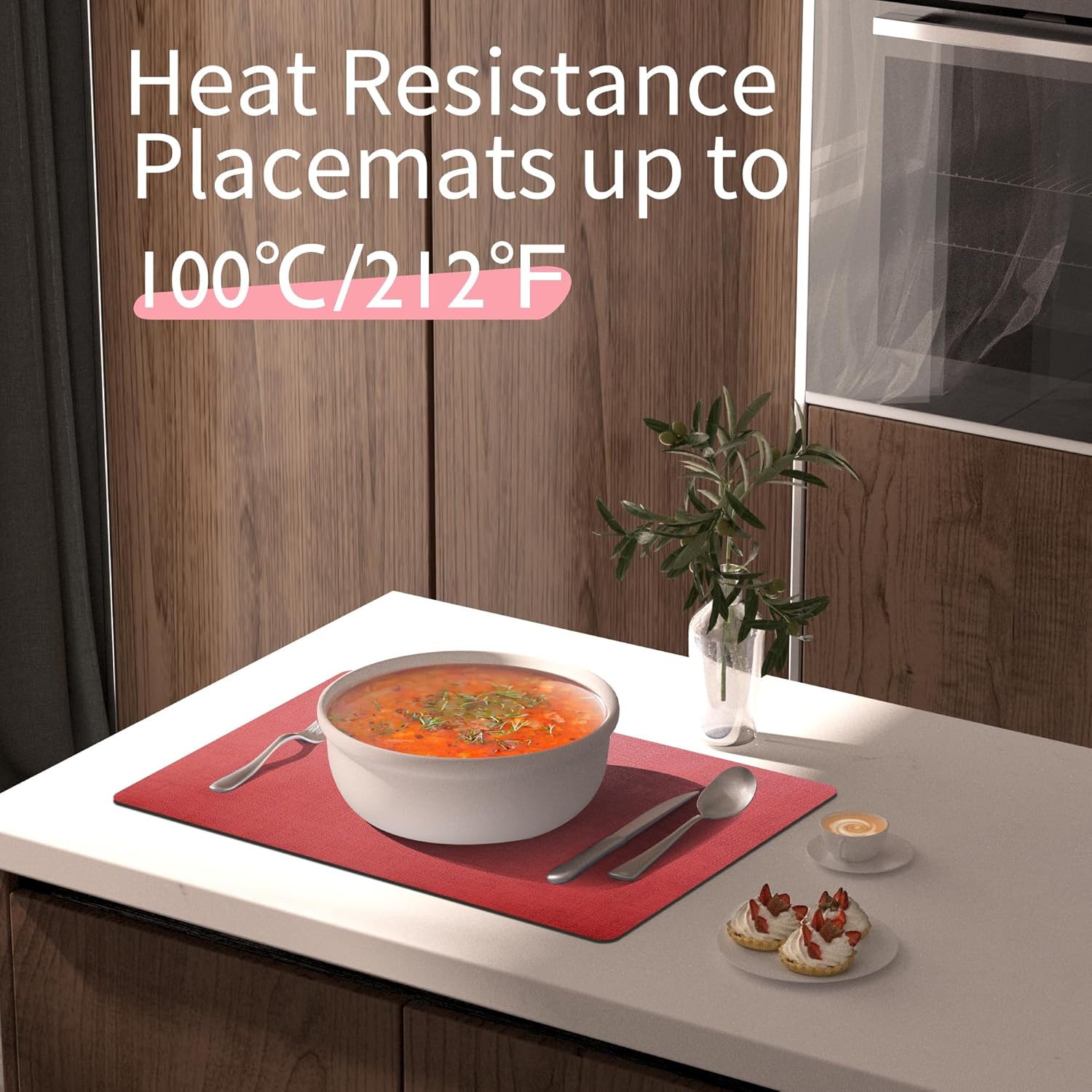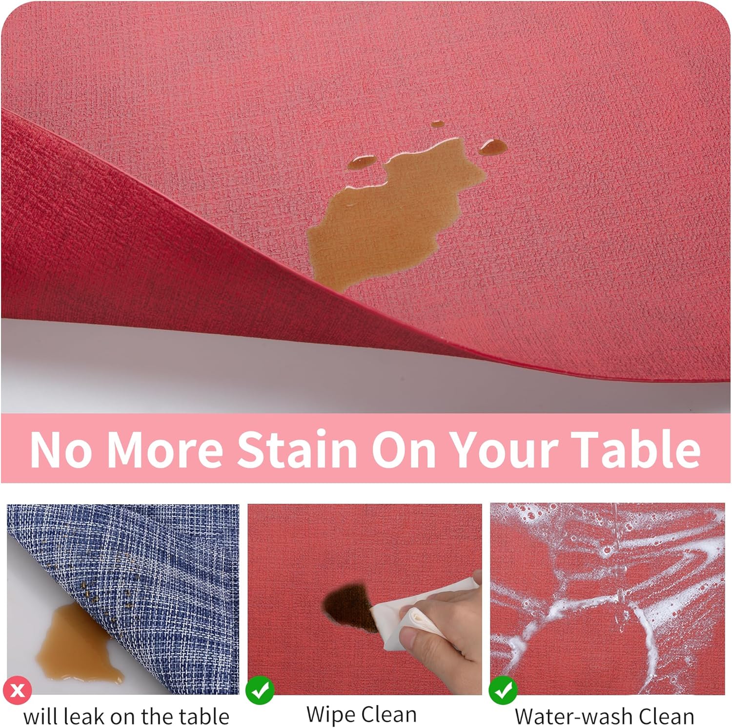 - EASY CARE: Designed for ease of use, these durable table mats withstand any spills and stains, making clean-up a breeze. Just with a simple wipe with a rag or a rinse under the tap, they'll be spotless and ready for your next meal