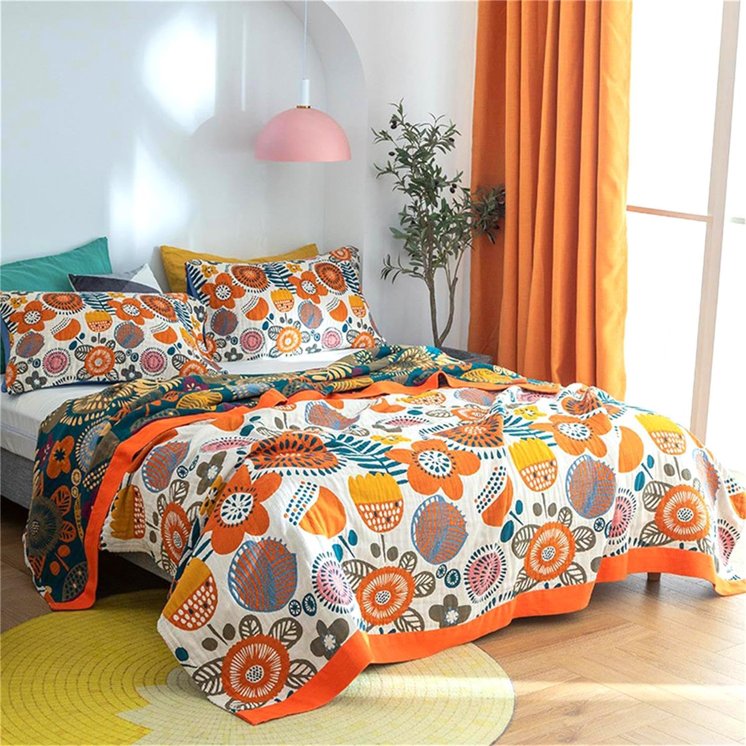 Boho Throw Blanket 60''x80'' for Bed Couch, Floral Muslin Bed Blankets Boho Quilt Travel Mexican 100% Cotton Super Soft Summer Blanket Picnic Blankets