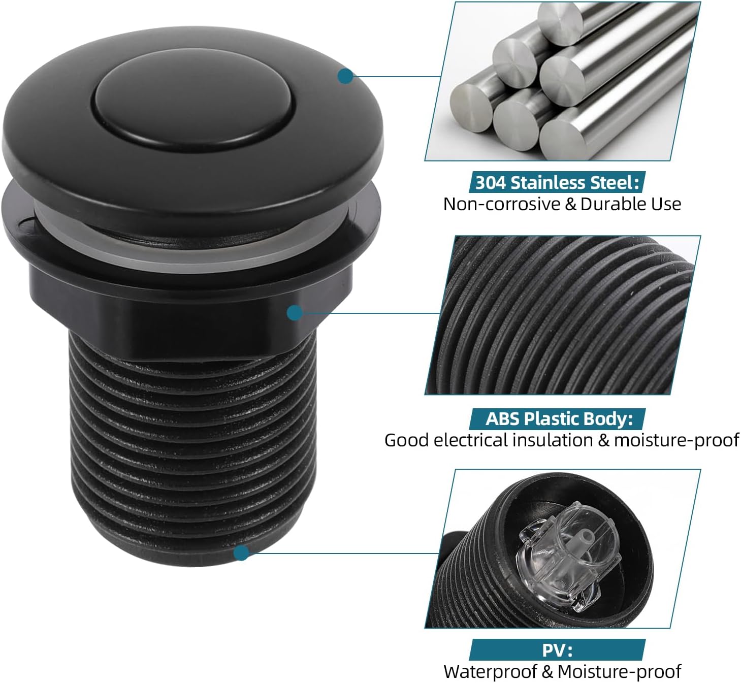 RQYEKDO Garbage Disposal Air Switch Kitchen Sink Top Long Stainless Steel Brushed Nickel Long 32mm/1.26 inch for Food and Waste Disposal On/Off Air Button Parts