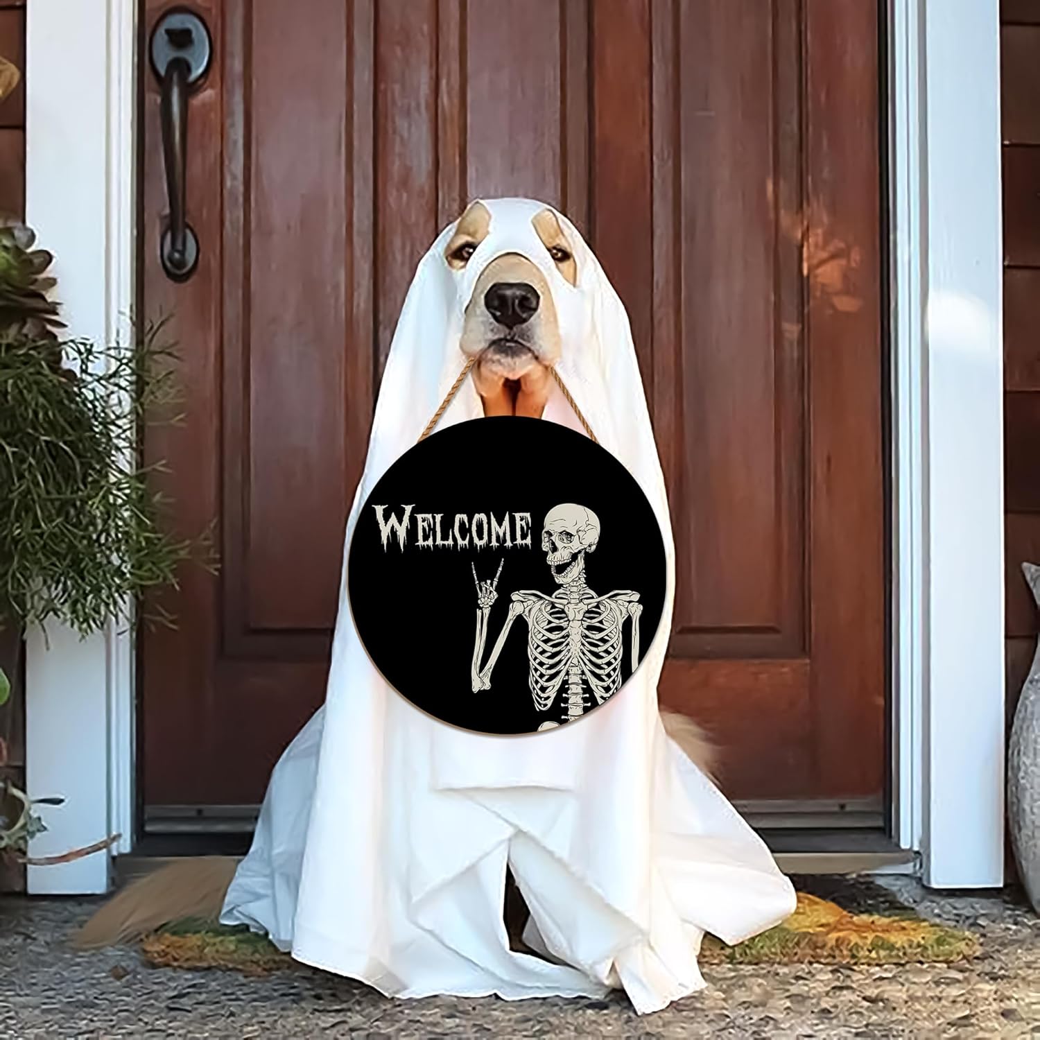 Halloween Decorations Wreath Halloween Skull Welcome Door Sign Front for Door Decoration, Rustic Wooden Holiday Decor for Front Door Porch Window Wall Farmhouse Indoor Outdoor