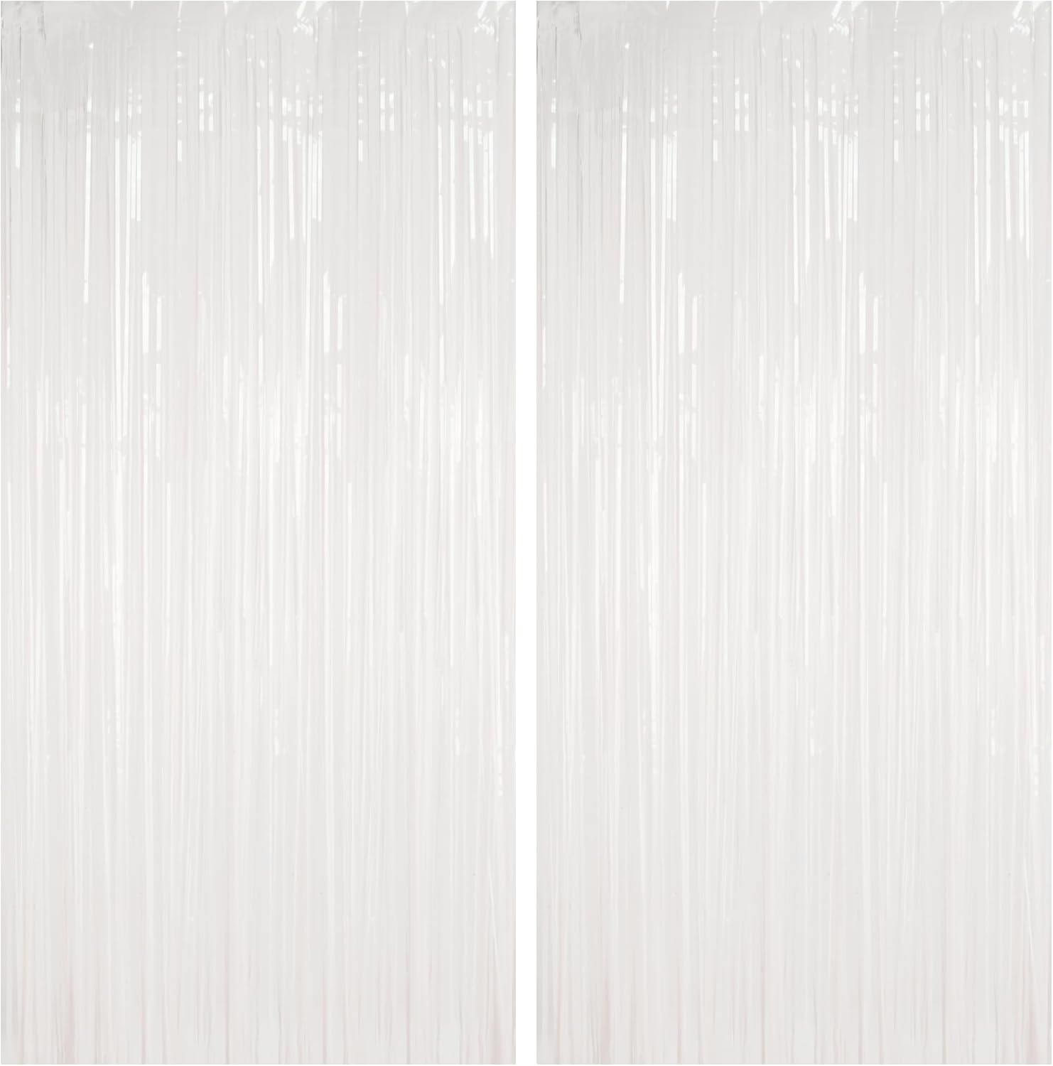 BRAVESHINE Tinsel Photo Backdrop Curtains - 2 Pack 3.2x8.2ft White Foil Fringe Streamer Curtain for Halloween/Boo Day/Valentine’s/Birthday/Christmas/Engagement/Bridal Shower Party Supplies Decorations