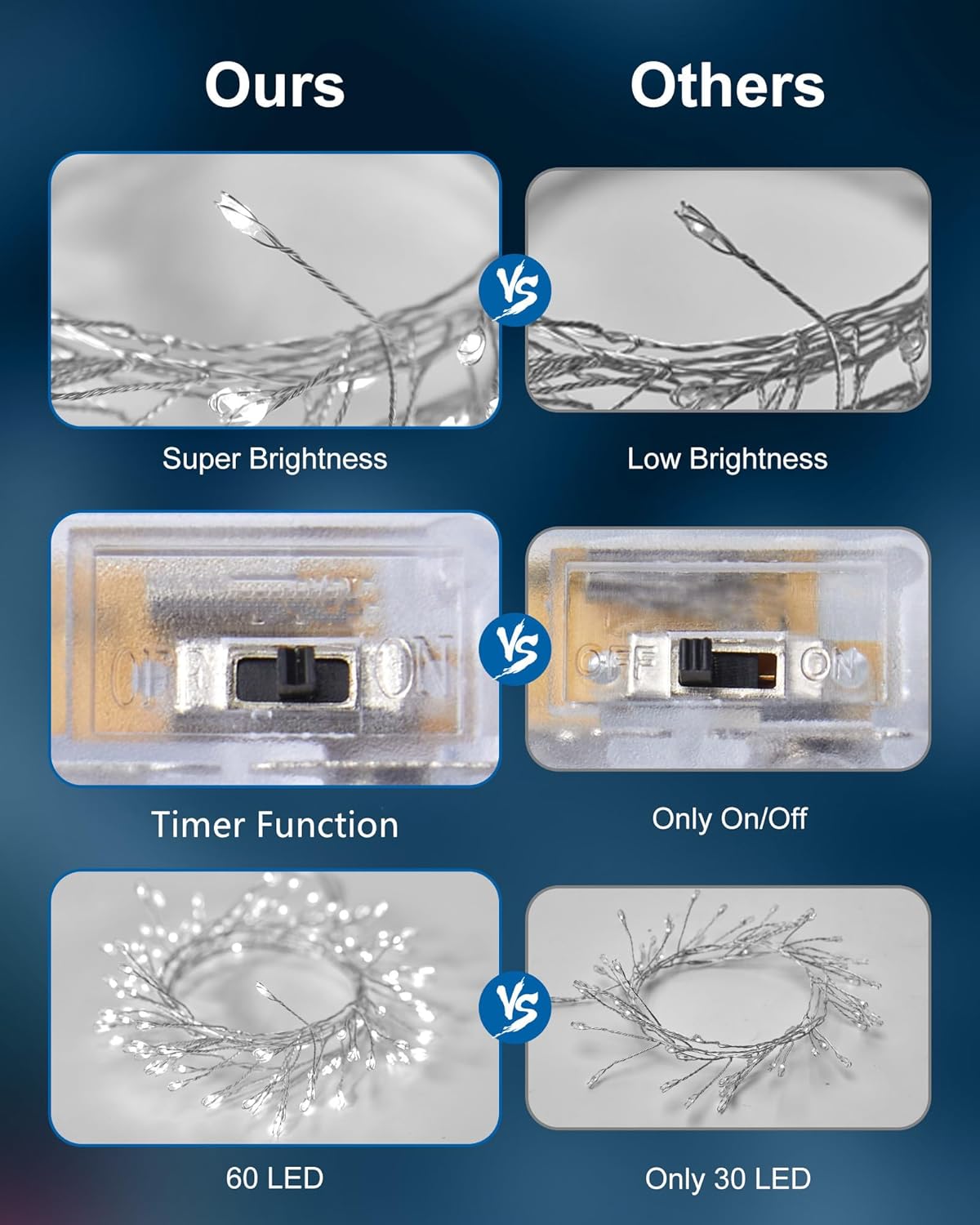 - Brighter Lights: 5 feet 3 x AA battery operated twinkling firecracker cluster lights, the luminous miniature LED light looks like a drop of light attached to a shiny wire, with a steady 360-degree viewing angle they illuminate in every direction