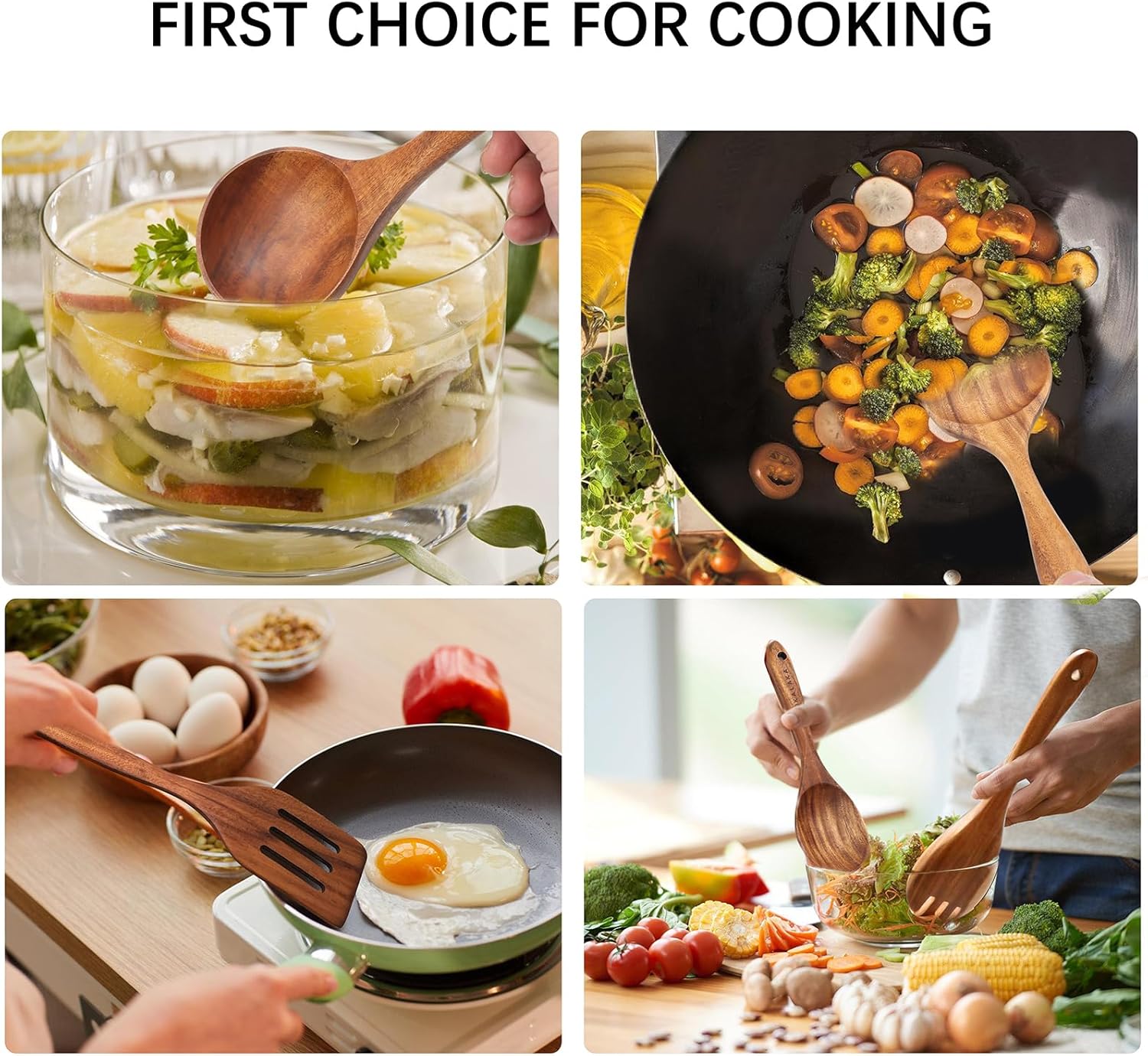 - 🏆【Perfect Workmanship】Our each wooden kitchen utensil set is made of a whole piece of teak without splicing.The kitchen utensils set After repeated polishing,the wood grain surface is smooth and delicate.No sawdust and any dents.The kitchen tools is a chef’s favorite,and it is a perfect gift for family and friends too.
