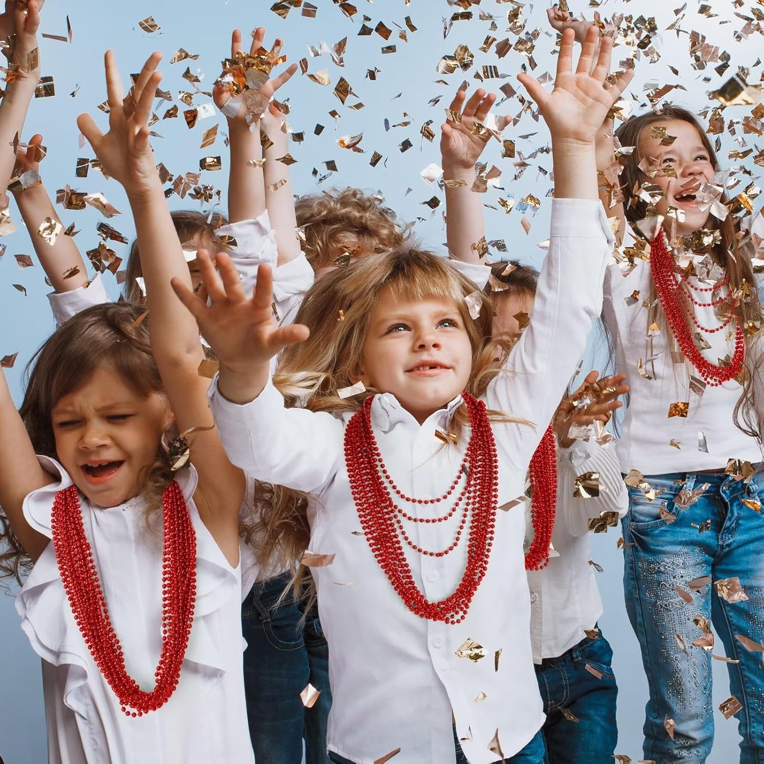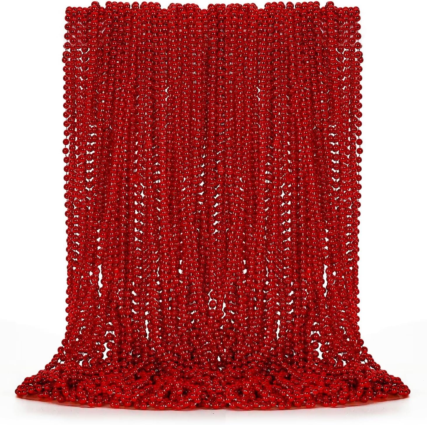 50PCS Bead Necklace, Red Christmas Bead Stuff Party Favors, 33" Necklaces Festival Parade Throw Accessories for Wedding Birthday Valentines Mardi Gras Christmas Celebrations Decorations