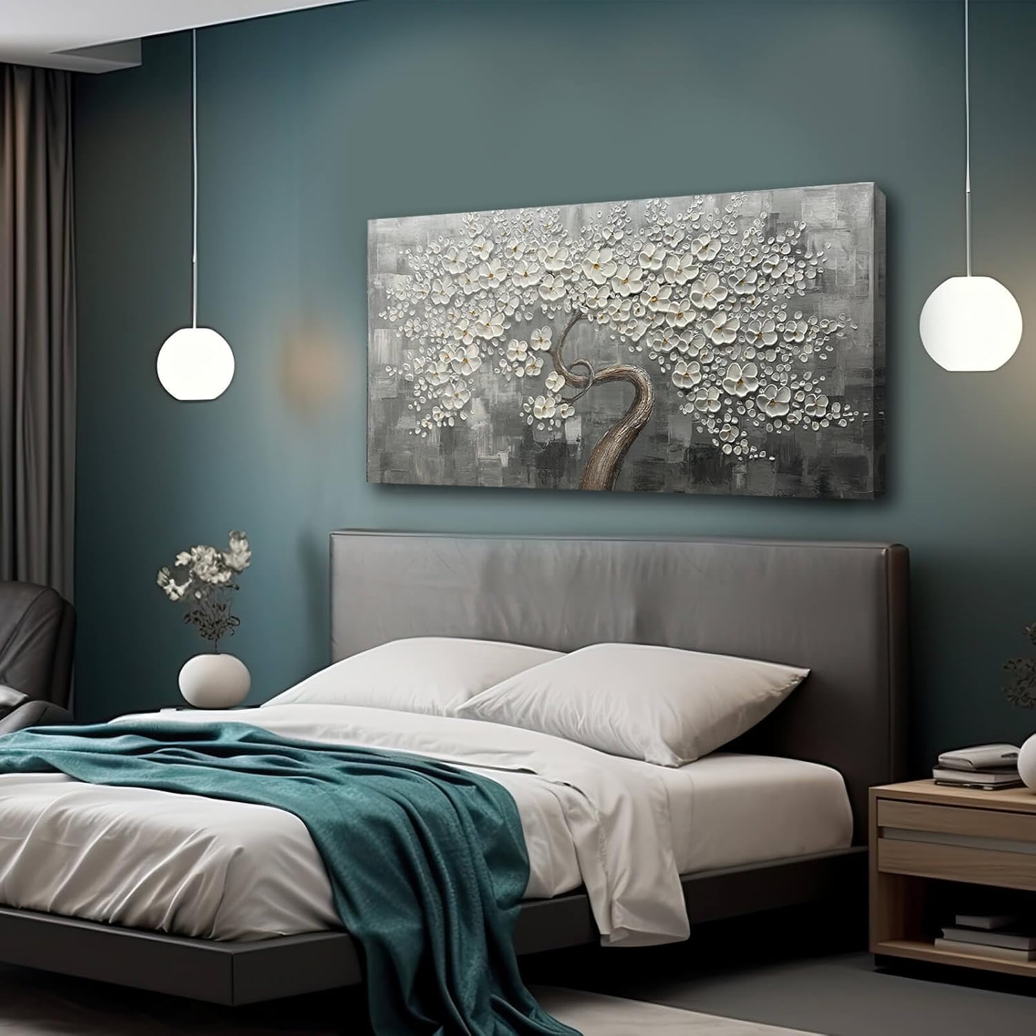- Size and Package: 24x48 inch , White Flower Wall Decor can be hung directly with the mounting hardware. Each canvas panel is handled with care, your paintings will be carefully packaged in cardboard to ensure they reach you in perfect condition