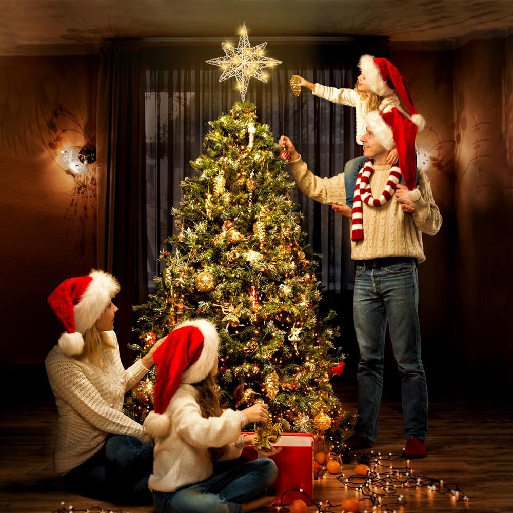 - 【Christmas Tree Decor】 Christmas star tree topper is a classical and romantic Christmas decoration. Attractive shapes and shining lights that you can easily create a shining and warm Christmas atmosphere.