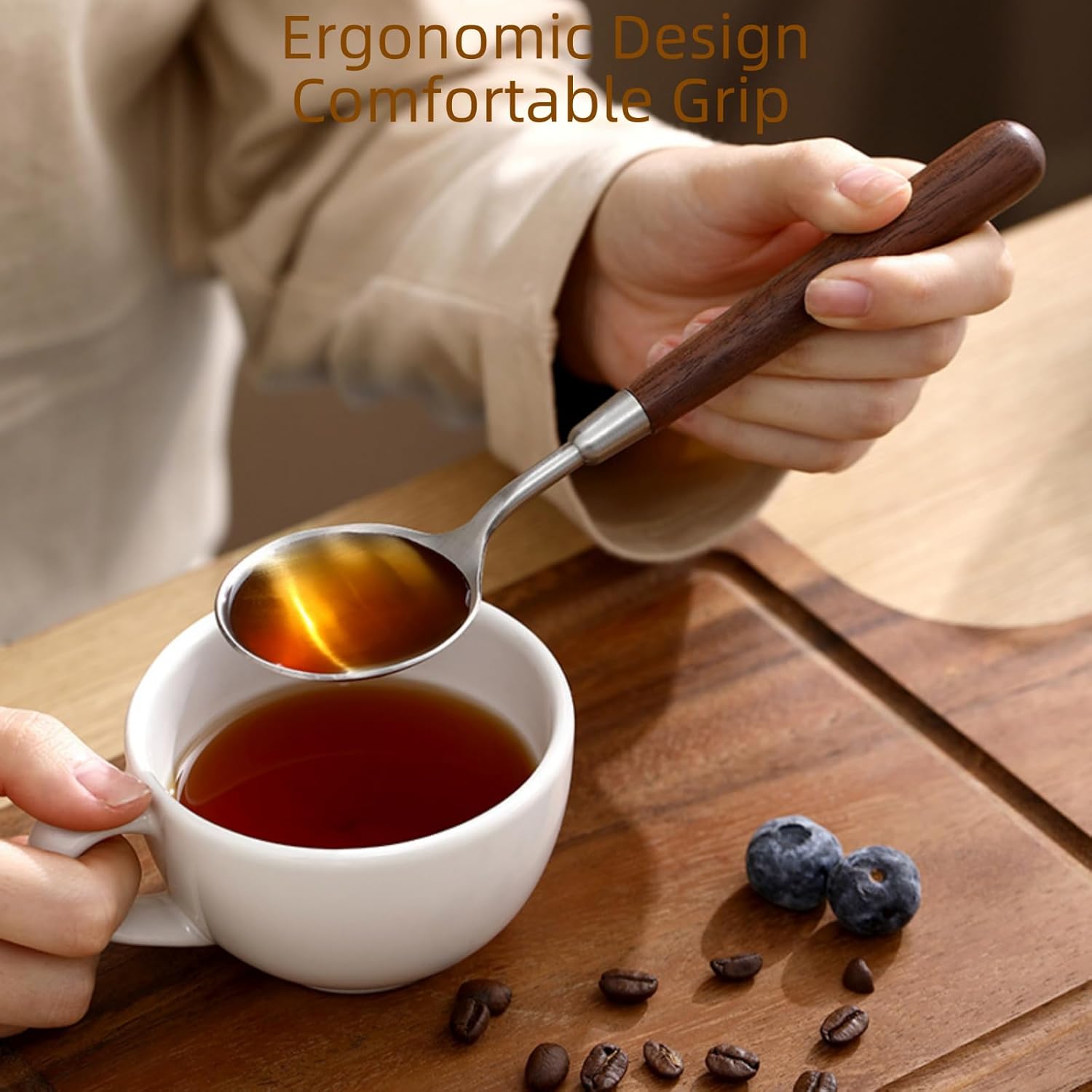 - Comfortable & Durable: The curvature of the handle of the stainless steel silverware set is ergonomically designed, and the thickened solid wood is not easy to bend. The cubiertos de acero inoxidable is crafted from high quality 18/10 stainless steel, durable and not easy to scratch.
