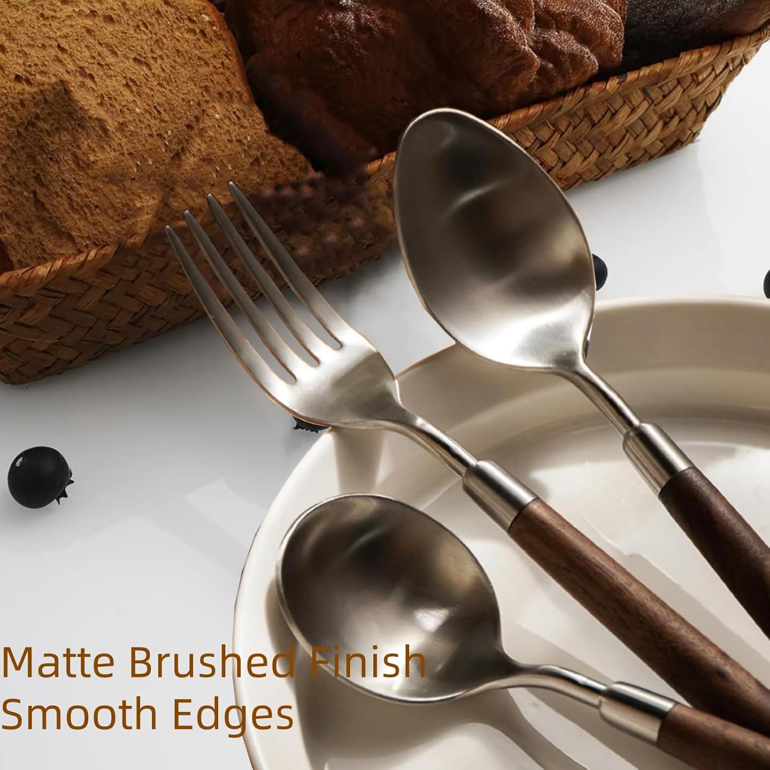 - Quality & High Grade: This utensil sets features natural walnut handles and a chic matte brushed finish for beautiful, smooth lines.Our silverware sets make every meal a good time!