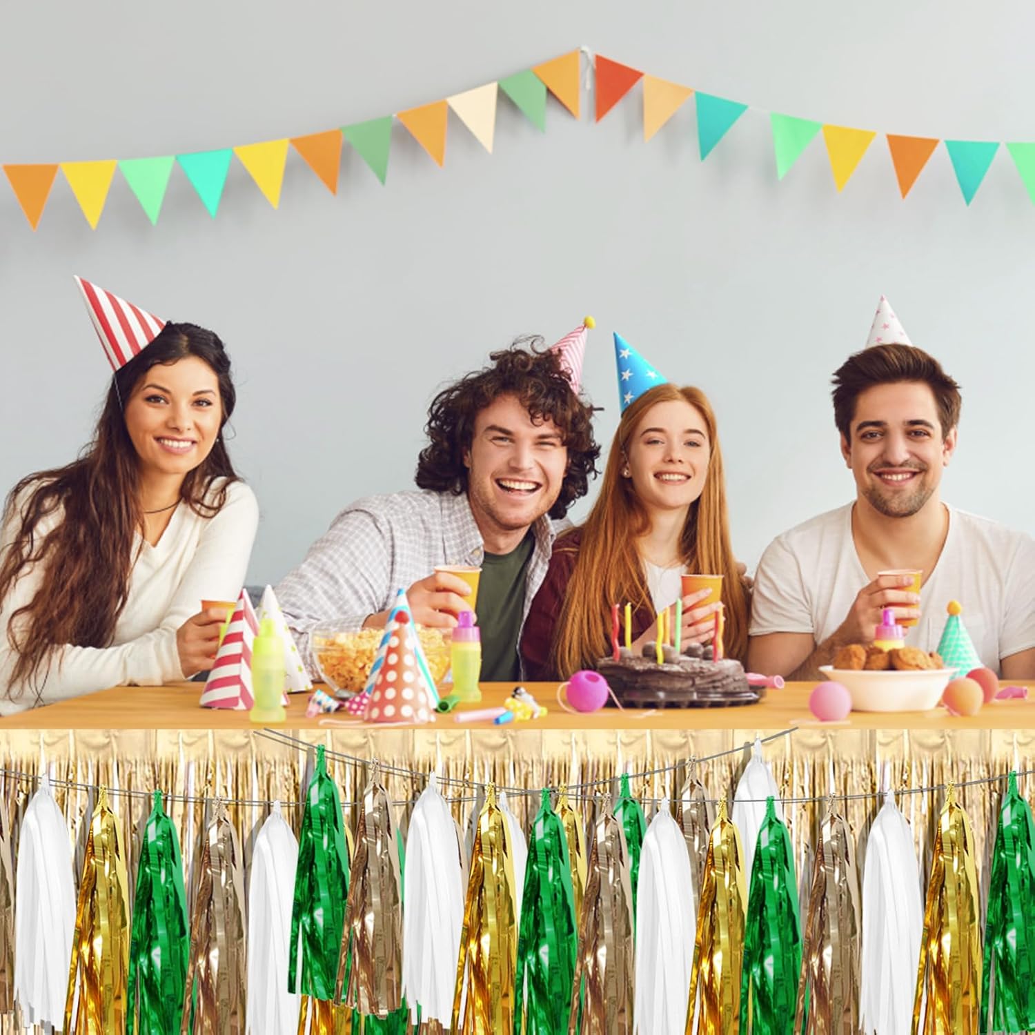 3P Sage-Green Beige-Mint Gold Foil Fringe Metallic Tassel Garland Banner, Tassels Banner Streamers for Parade Floats, Bachelorette, Wedding, Birthday, Christmas, Bridal/Baby Shower Party Decorations