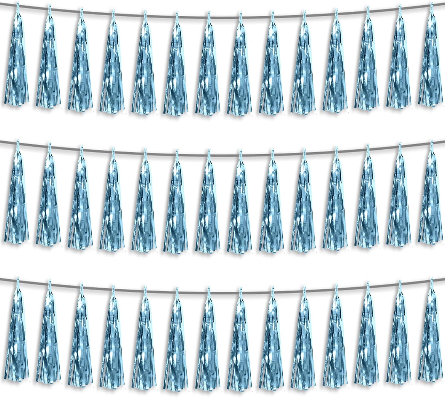 3P Light Blue Foil Fringe Metallic Tassel Streamers Banner Tassel Garland for Parade Floats, Bachelorette, Wedding, Birthday, Halloween, Christmas, Bridal/Baby Shower Party Decorations
