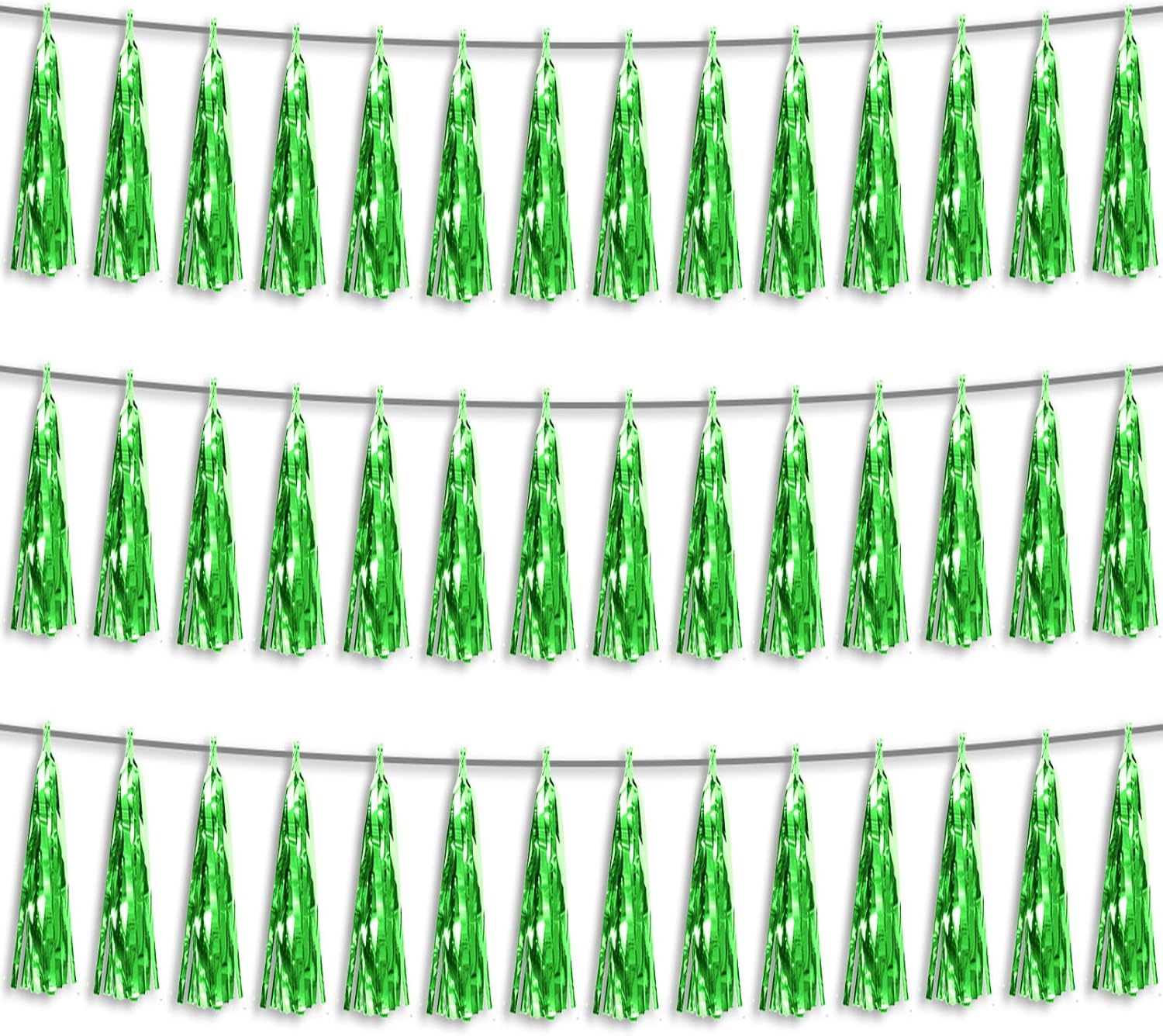 3P Green Foil Fringe Metallic Tassel Streamers Banner Tassel Garland for Parade Floats, Bachelorette, Wedding, Birthday, Halloween, Christmas, Bridal/Baby Shower Party Decorations