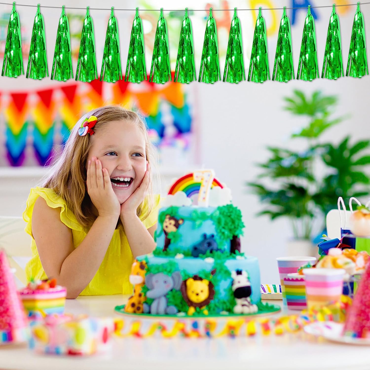 - 【Green Party Supplies Set】: The total length of the green birthday tassels banner is 29.5 feet 45tassels, divided into 3 strips, each 9.8 feet long. Each banner contains 15 tassels, and each tassel measures 14 inches, for birthday decorations many occasions, and so on