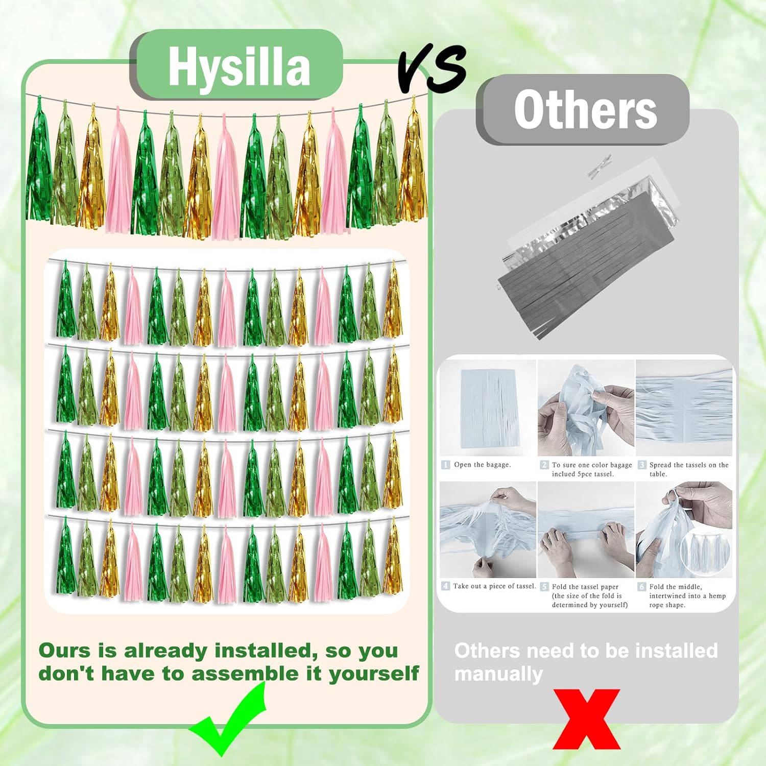 - 【Perfect Party Decoration】The sage green pink gold tinsel garlands are designed in a metallic Fringe, bright, and beautiful, at the same time, they shine in the sun, and these gorgeous tassel garlands create a wonderful backdrop or centerpiece for your party space. and bring you, your family, and your friend's good Visual effects. your party many emotional and touching moments where a lot of pictures will be taken and everybody will have a wonderful time together.