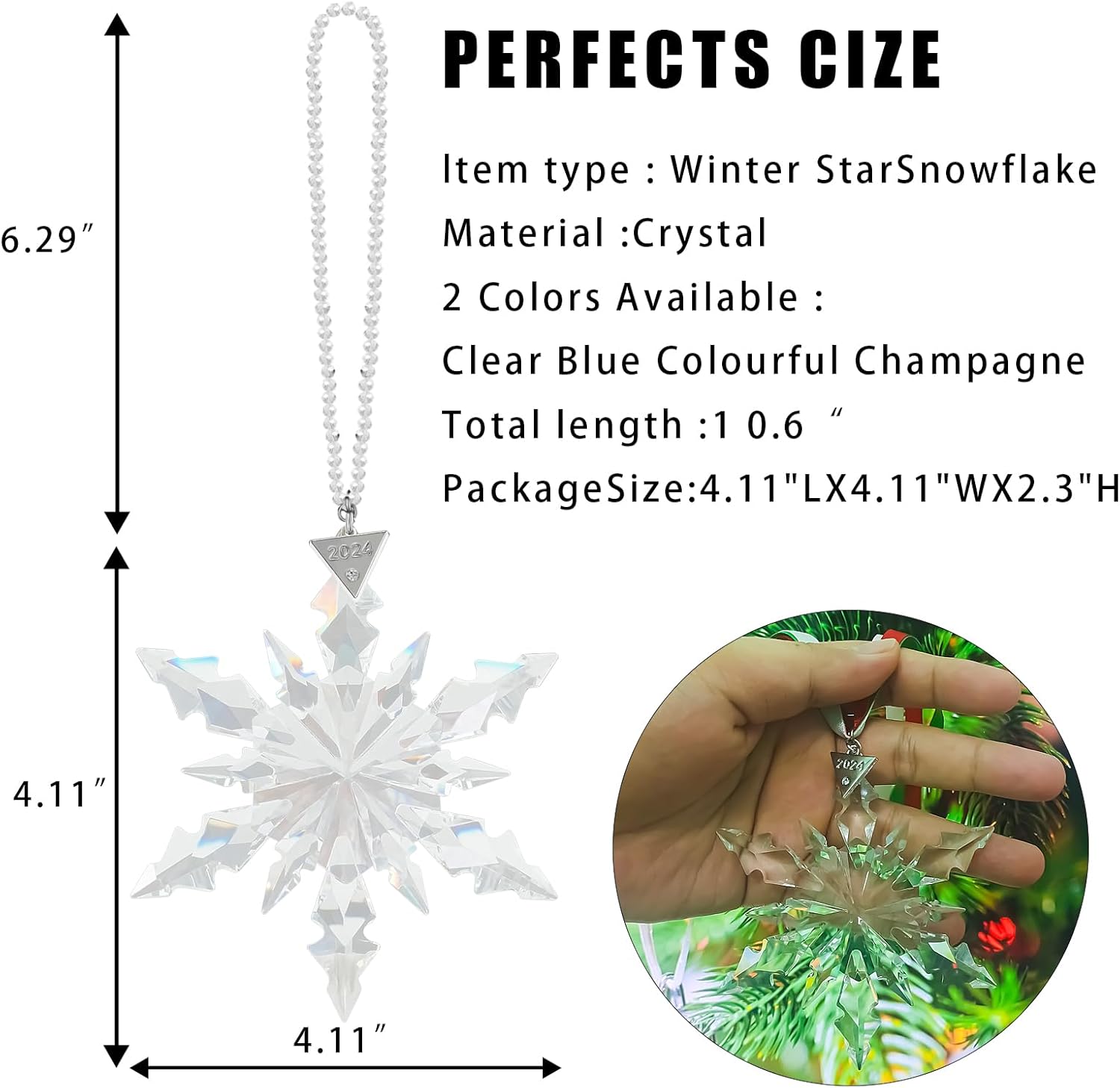 - The set includes: (13.5 cm Ć 8.5 cm) snowflake decoration, 3 ribbons, 1 crystal chain and 1 gift box