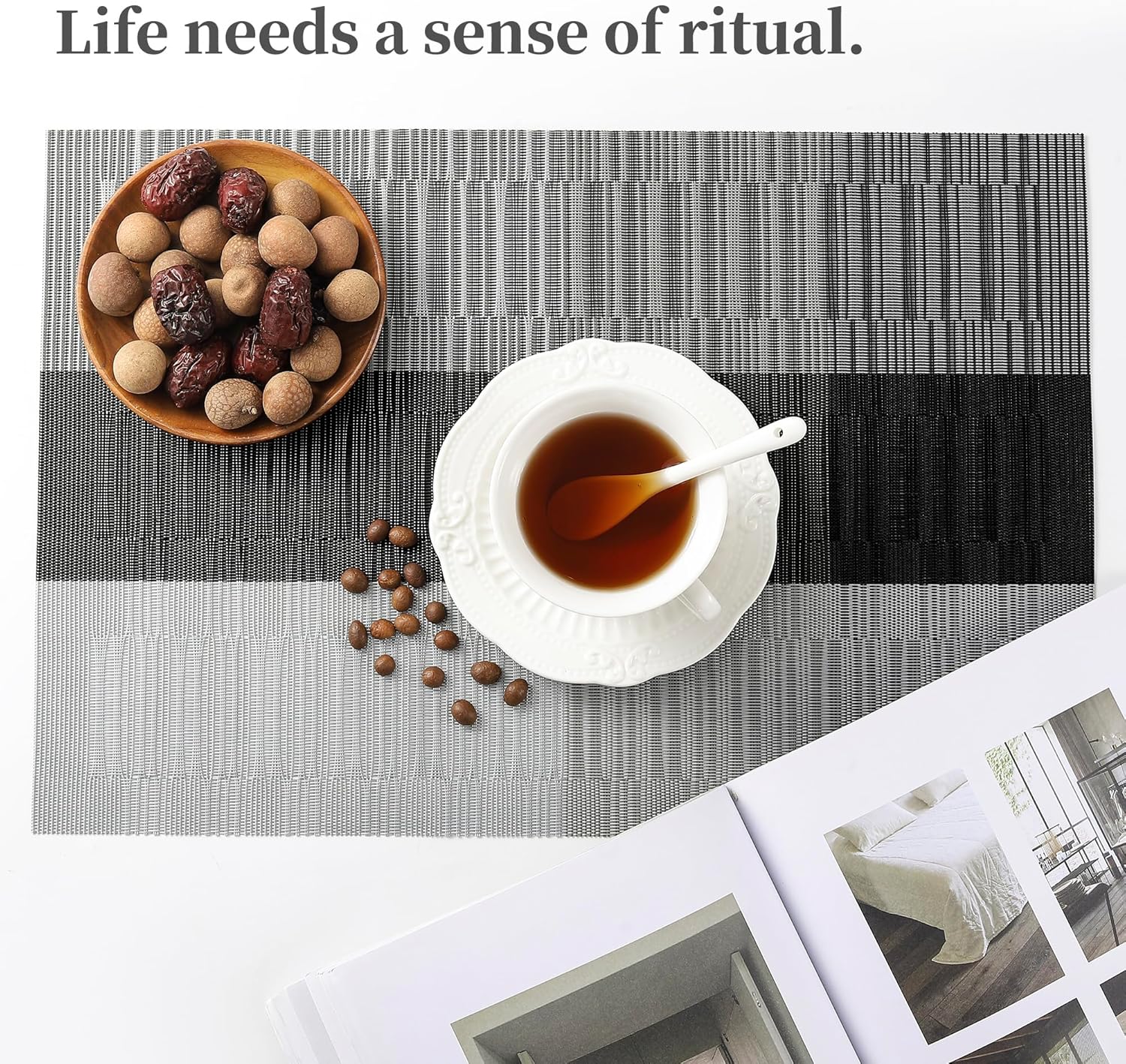 - Elegant and Practical Design: With a luxurious vinyl woven texture, precision cutting, and heat-trimmed edges, our double-sided placemats offer a sophisticated and practical solution. They provide a non-slip surface, resist fading, and are easy to clean, elevating your dining experience.