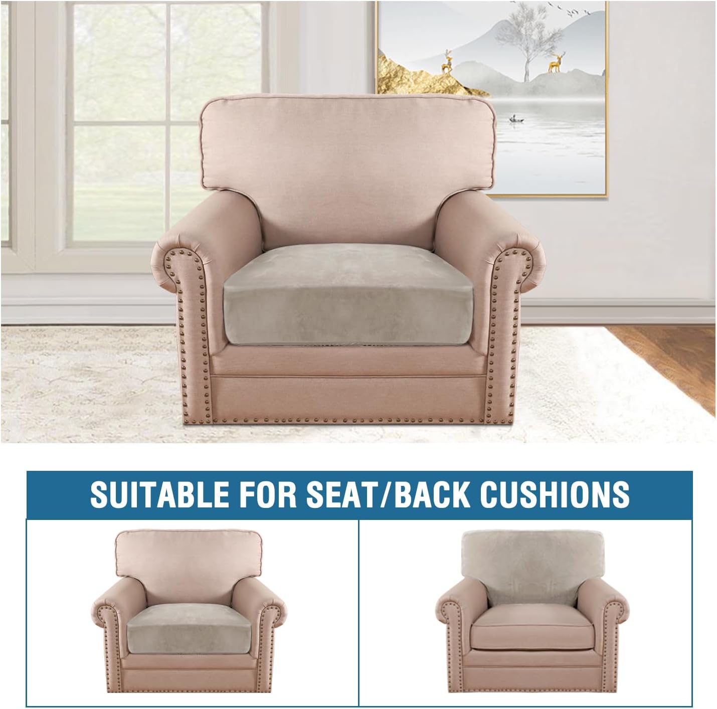 H.VERSAILTEX Velvet Stretch Couch Cushion Cover Plush Cushion Slipcover for Chair Cushion Furniture Protector Seat Cushion Sofa Cover (1 Piece Armchair Cushion Covers, Oatmeal)