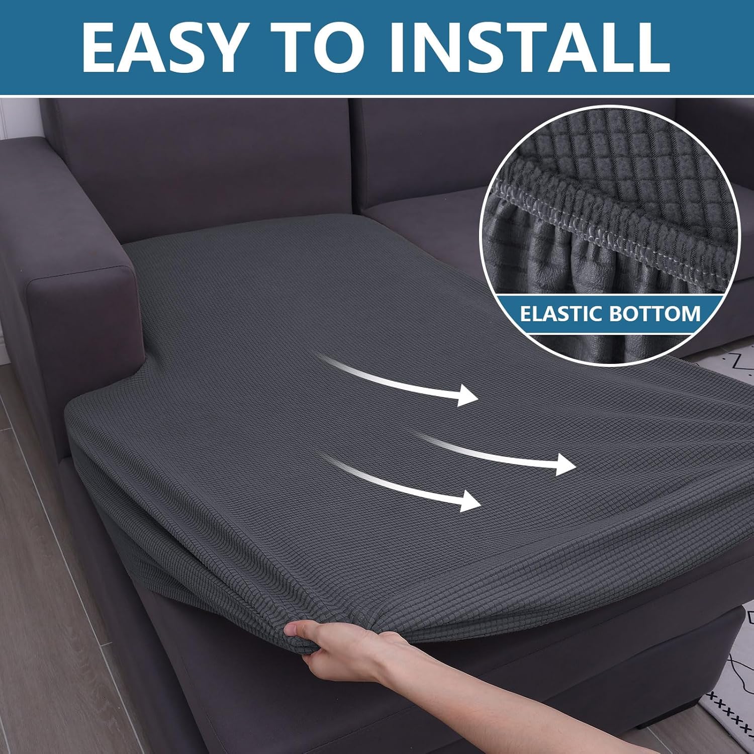 hyha Waterproof Couch Cushion Covers, Sectional Sofa Cushion Slipcovers L Shape, Thick Stretch Jacquard Fabric, Washable Chaise Lounge Cover with Elastic Bottom (1 Piece for Chaise, Grey)