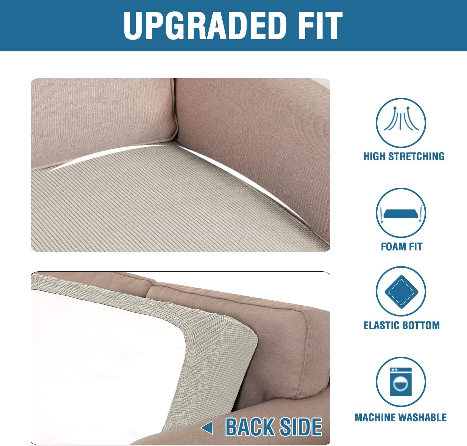 - NON SLIP: Effortless for installation (guide photos on selling page), sewn with thick elastic loops to cover the bottom edges. It is easy to install and take off, making your home more harmony, high recommended for both leather and cloth furniture