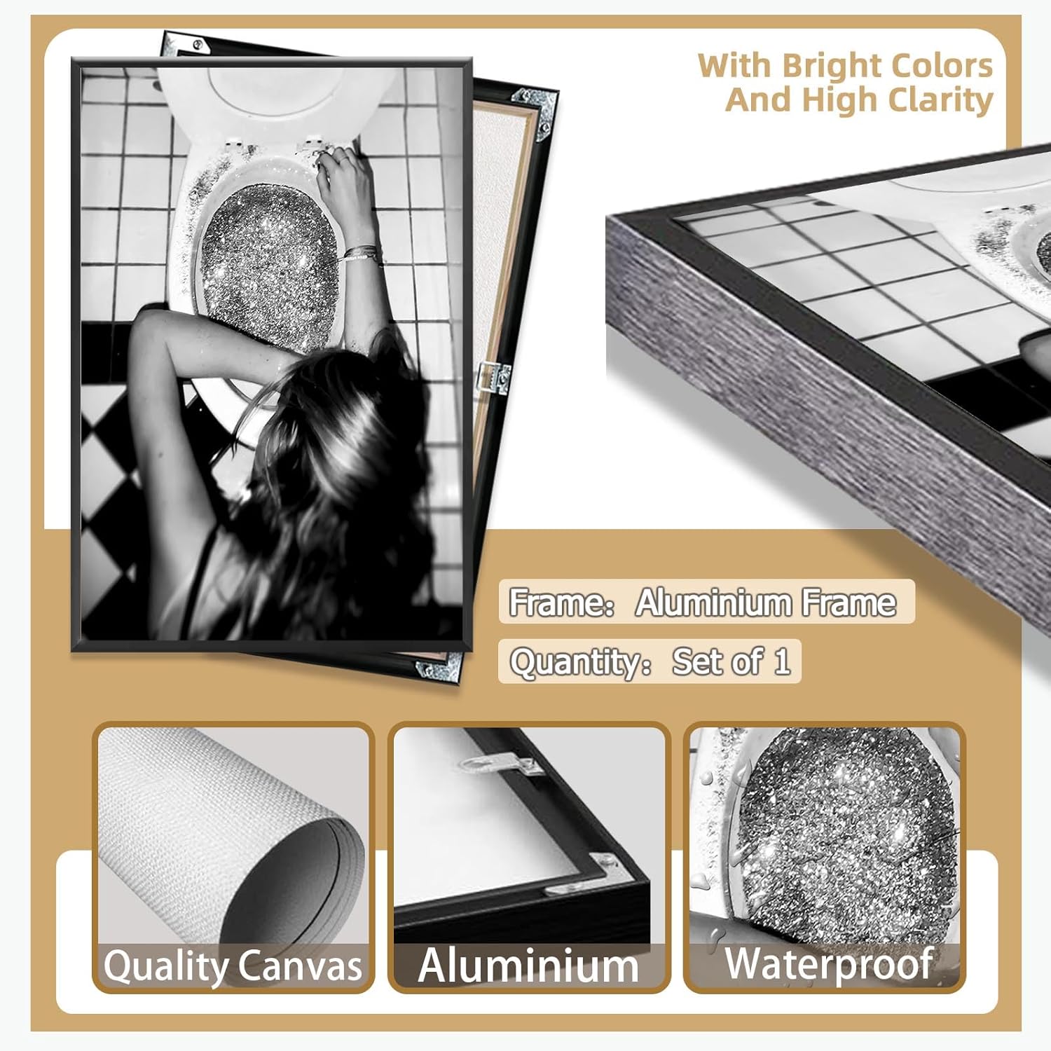 Funny Bathroom Wall Art Black and White posters Bar Disco Party prints painting Girls Bathroom Canvas wall art Funky aesthetics Teen Girl Bedroom wall decor for 12x16in Framed