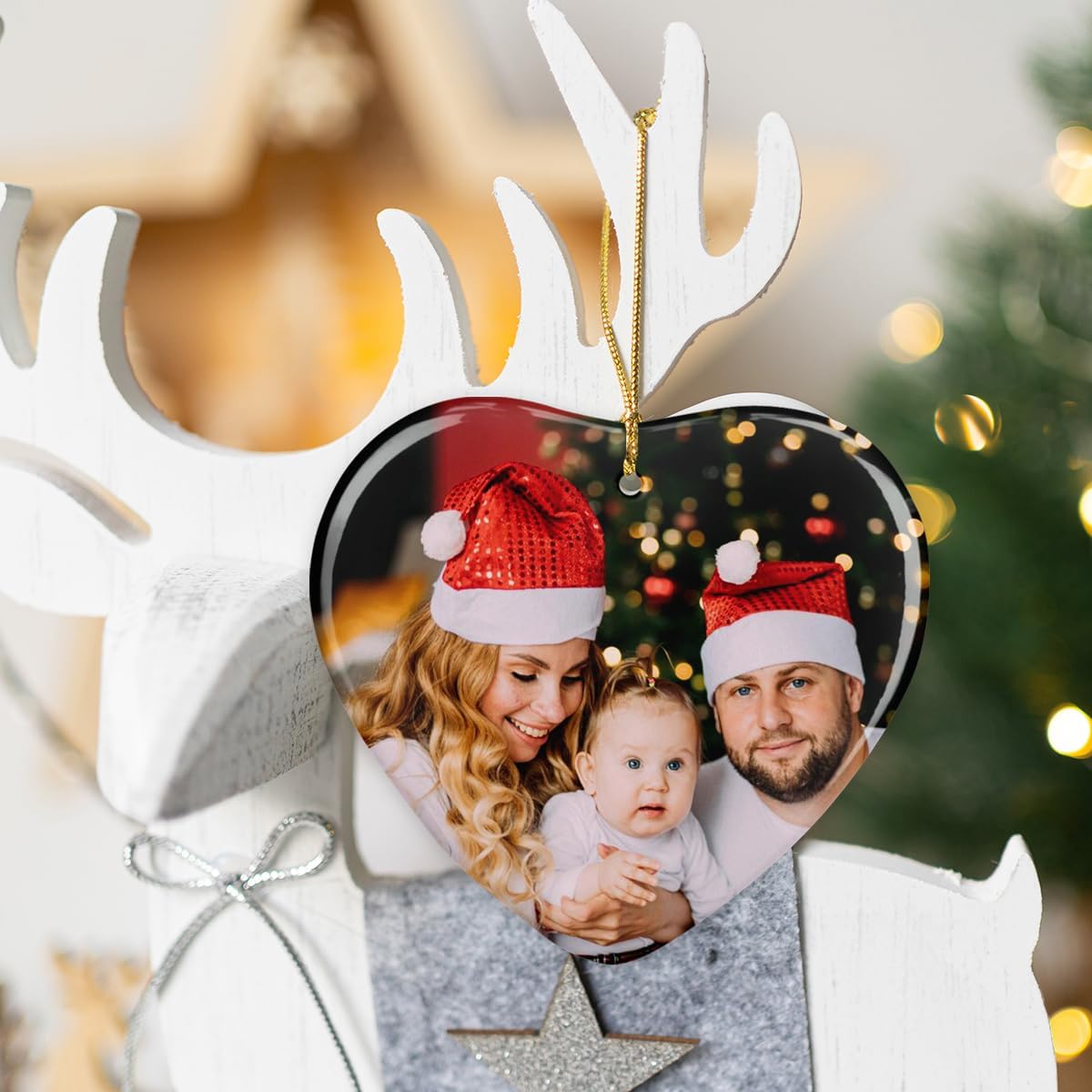 Personalized Christmas Ornaments with Photo and Text, Custom Heart Shape Ceramic Hanging Ornament with Picture for Christmas Tree, Customized Xmas Gift for Parents Family