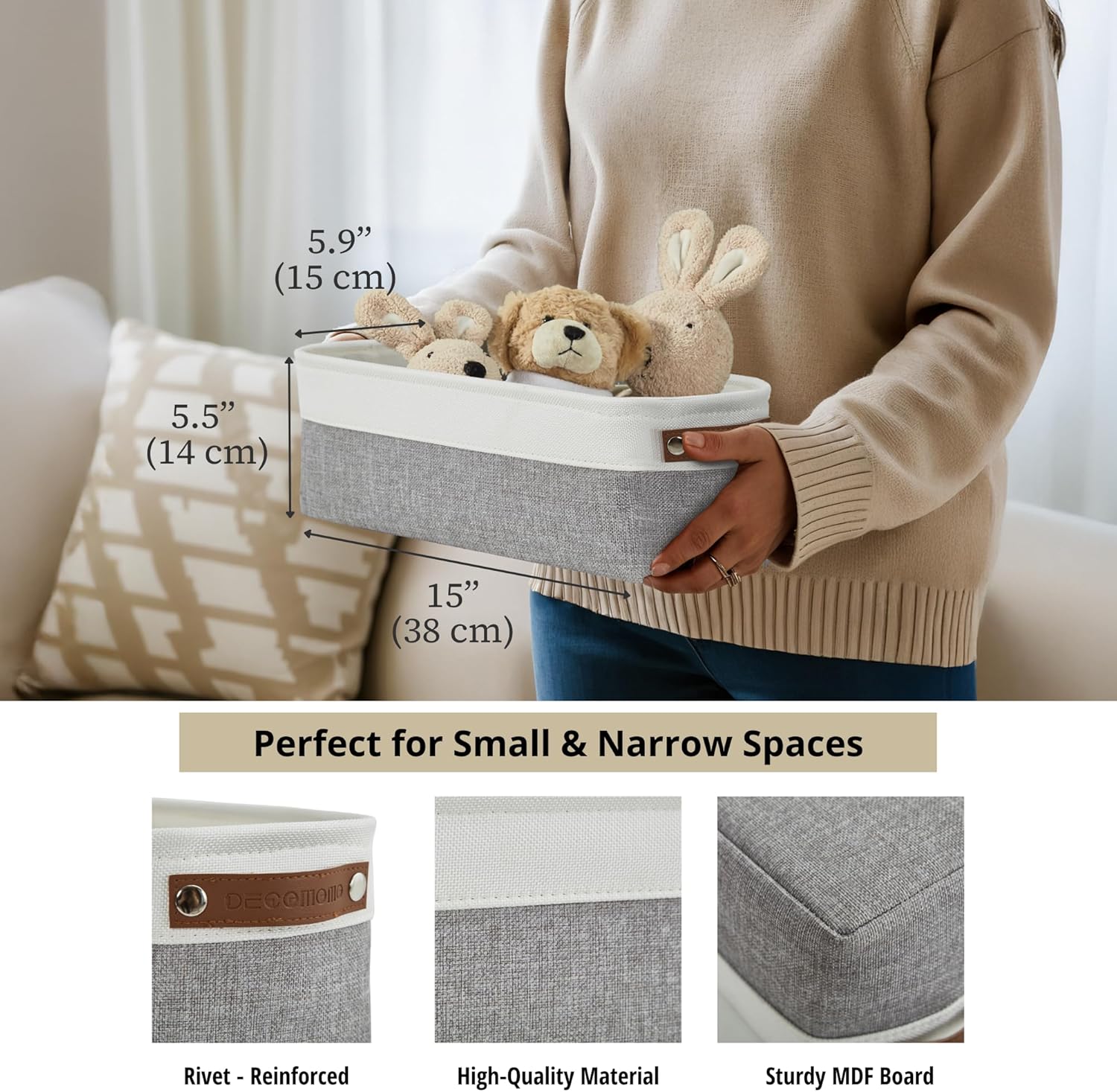- Premium Material: DECOMOMO small storage basket is made with extra thick EVA fabric, reinforced with 2.5mm MDF fiberboard bottom and upper metal frame to keep its shape and structure.