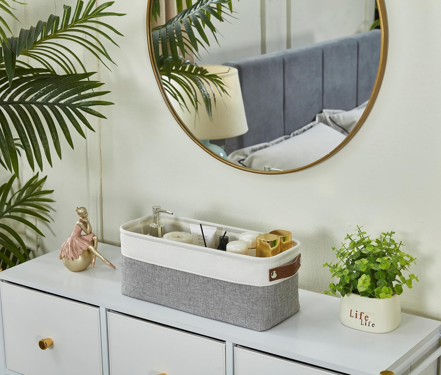 - Attractive Design: Our small basket has a sleek design and comes with two faux leather handles and a dual-color exterior. These organization baskets have a modern and luxurious feel with a functional design.