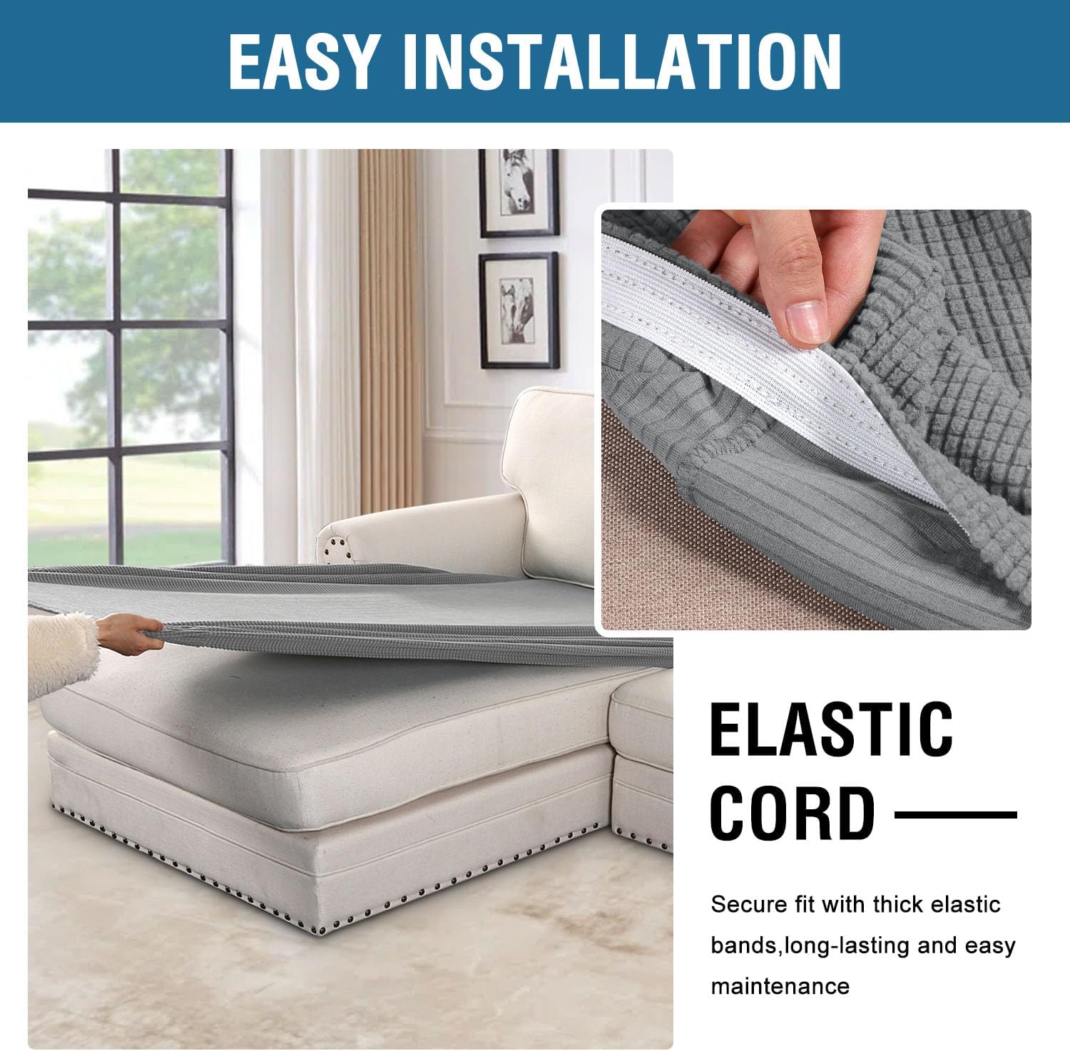- GREAT FIT: Set of 1. This innovated cushion slipcover is crafted from durable and soft high stretch knitted jacquard fabric. Chaise Lounge Cover for Both Left/Right L Shaped Couch(fits up to 33-37 inch width, 55-61 inch depth, 3-8 inch thickness). Feature one-size-fits-most, kindly measure before ordering