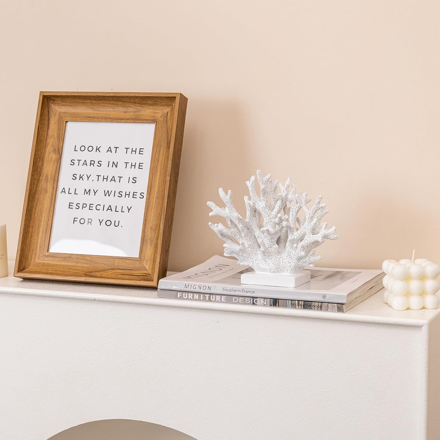 5.8" H White Coral Decor, Resin Coral Statue, Nautical Decorations for Home, Bedroom, Bathroom, Living Room, Beach/Coastal/Ocean Themed Cabinet Shelf Tabletop Decor