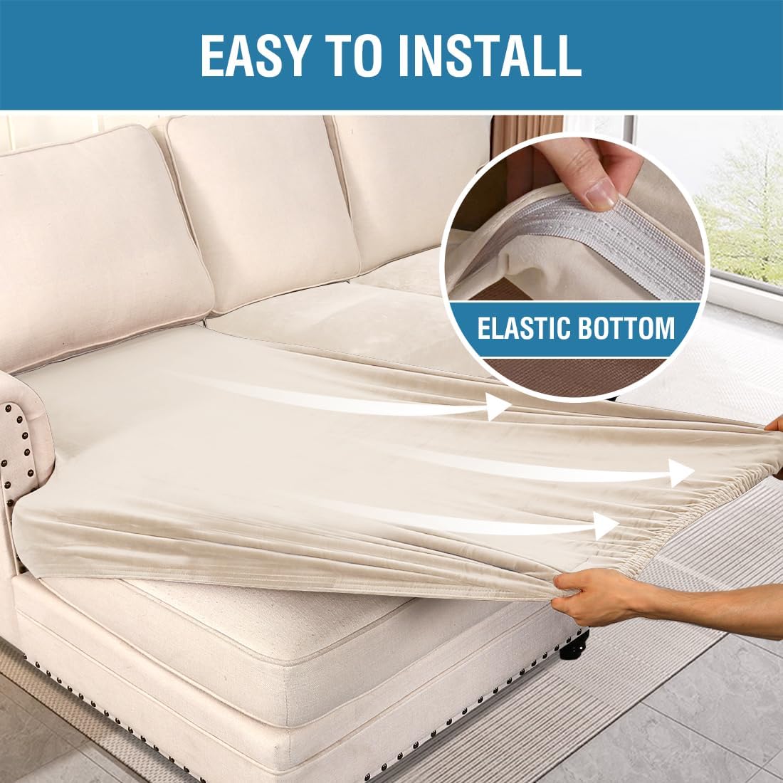 H.VERSAILTEX Velvet Stretch Sectional Couch Covers - 4 Piece Sofa Seat Cushions for L Shape Sectional Couch (Large 3 Seater + 1 Chaise, Ivory)