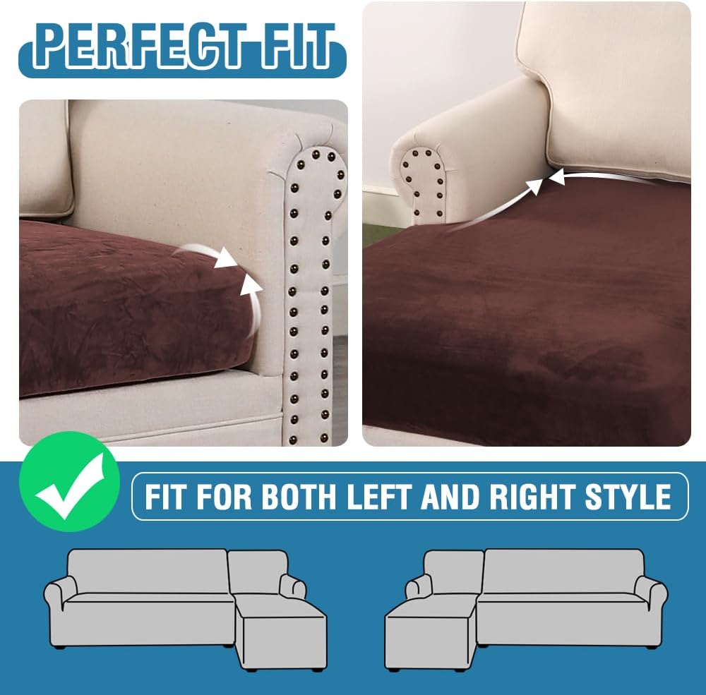 H.VERSAILTEX Velvet Stretch Sectional Couch Covers 3 Pieces Sofa Seat Cushion Covers L Shape Separate Cushion Couch Cover for Both Left/Right Sectional Couch (Large Sofa 2 Seater + 1 Chaise, Brown)