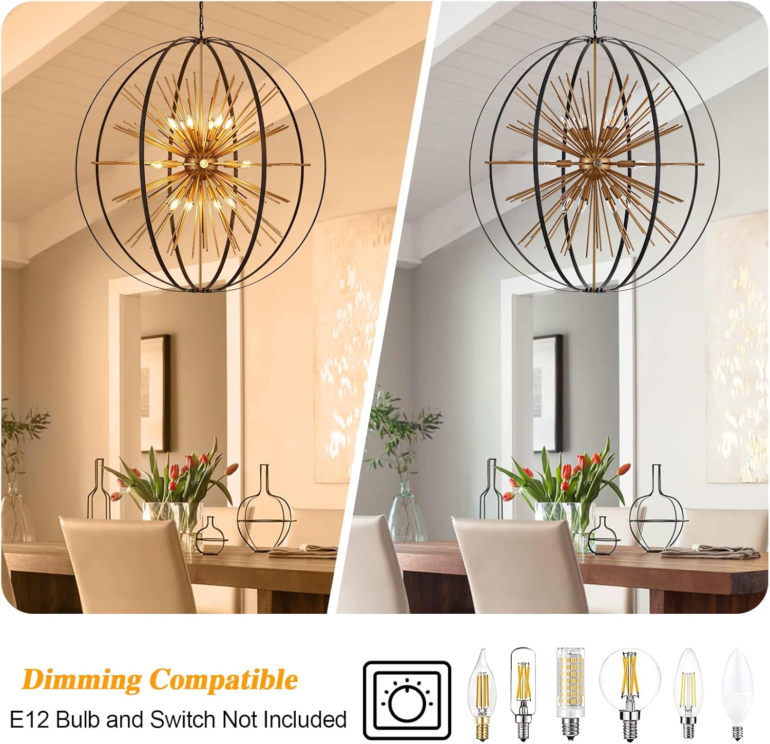 - 【Stunning Firework Design】The Black and Gold Sputnik Chandelier features a captivating spherical body that resembles a preserved firework, creating a striking focal point when illuminated. This Modern Chandelier combines contemporary and vintage elements, making it a perfect addition to various settings such as the living room, kitchen island, dining room, hallway, stairway, entryway, as well as restaurants.