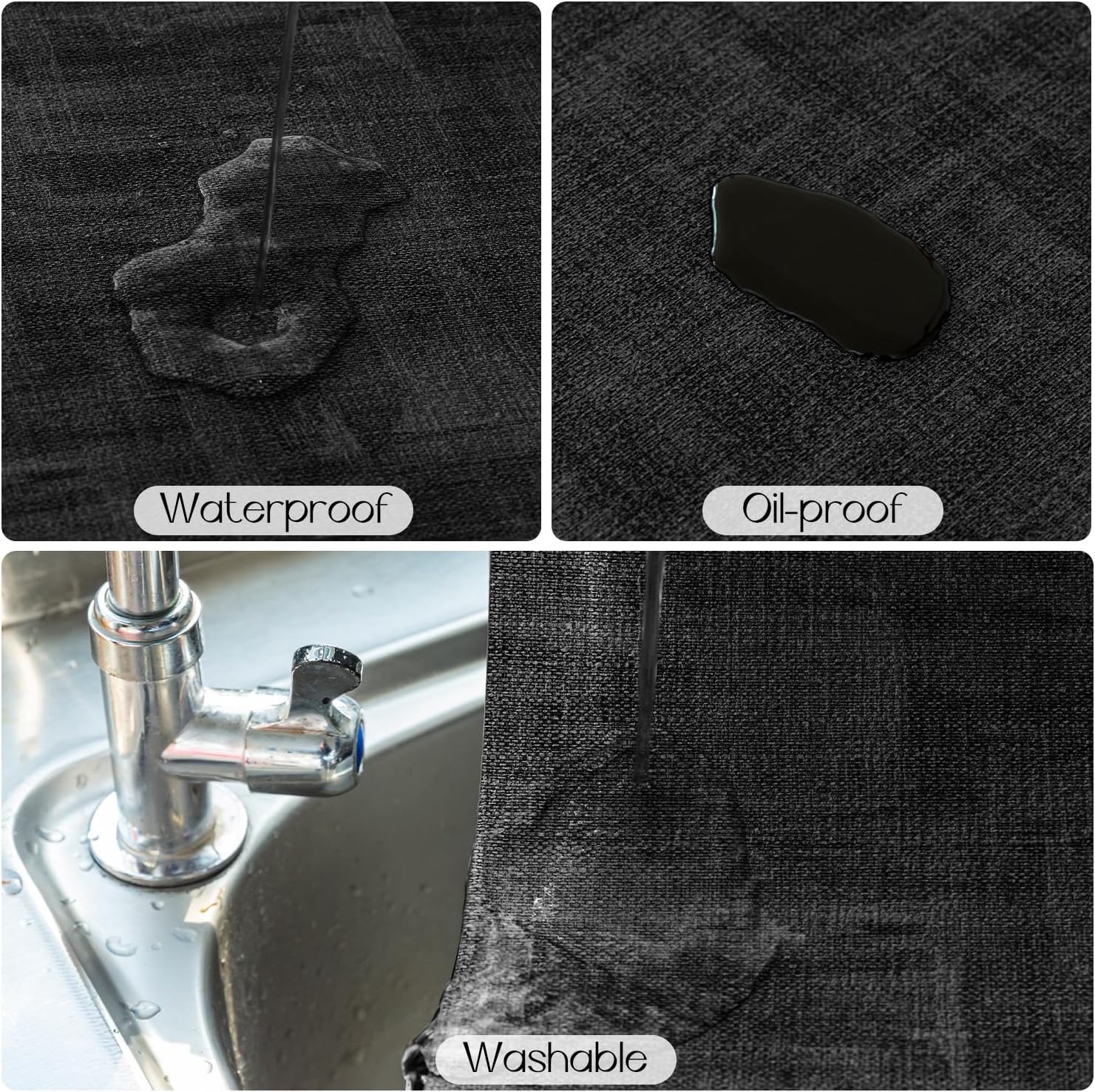 Romanstile Reversible Vinyl Placemats Set of 4, Faux Leather 100% Waterproof Oil-Proof Wipeable Place Mats, Heat Resistant Dual Sided Table Mats for Kitchen/Dining/Party (Grey Black, 12 x 17 Inch)