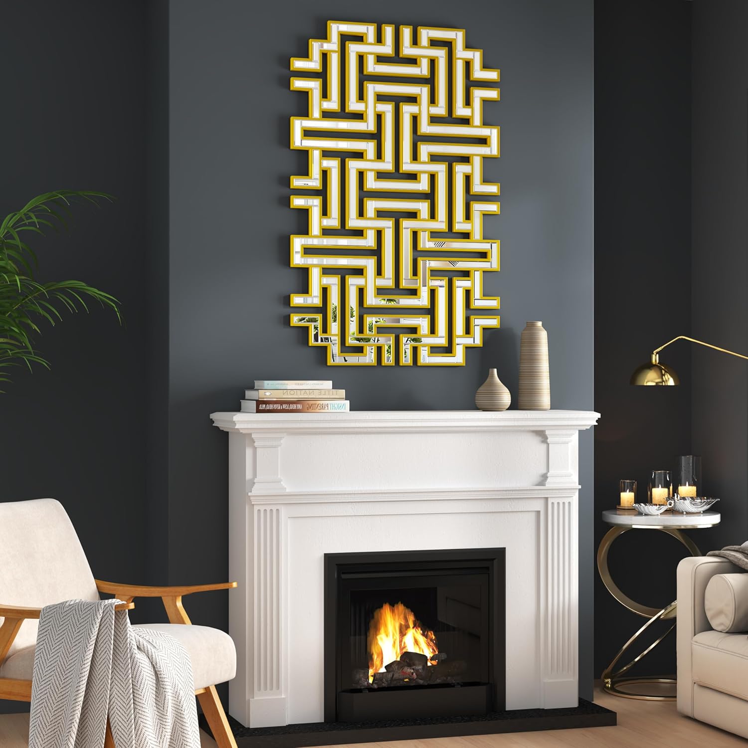 - STUNNING GEOMETRIC MAZE DESIGN: This wall mirror, a prime decorative mirror, showcases an intricate geometric maze pattern, creating a captivating visual appeal.