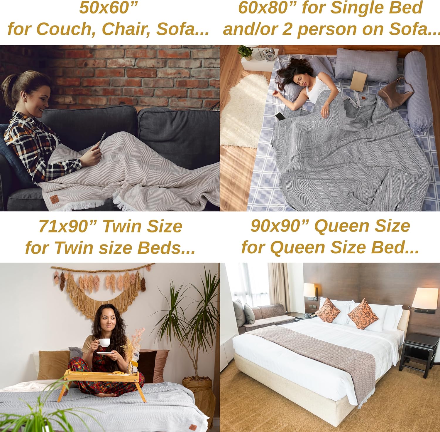 - CELEBRATE SUSTAINABLE STYLE: Made in Turkiye with recycled cotton, this cotton throw blanket brings eco-conscious comfort to your home; the soft weave and fringe detail give this woven blanket for bed a rustic, decorative touch that layers beautifully in any space