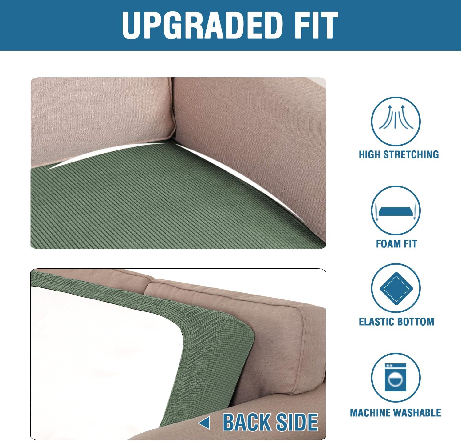 H.VERSAILTEX Super Stretch Individual Seat Cushion Covers Sofa Covers Couch Cushion Covers Slipcover Sets Thick Jacquard Textured Twill Fabric (1 Piece Sofa Cushion Cover, Loden Frost)