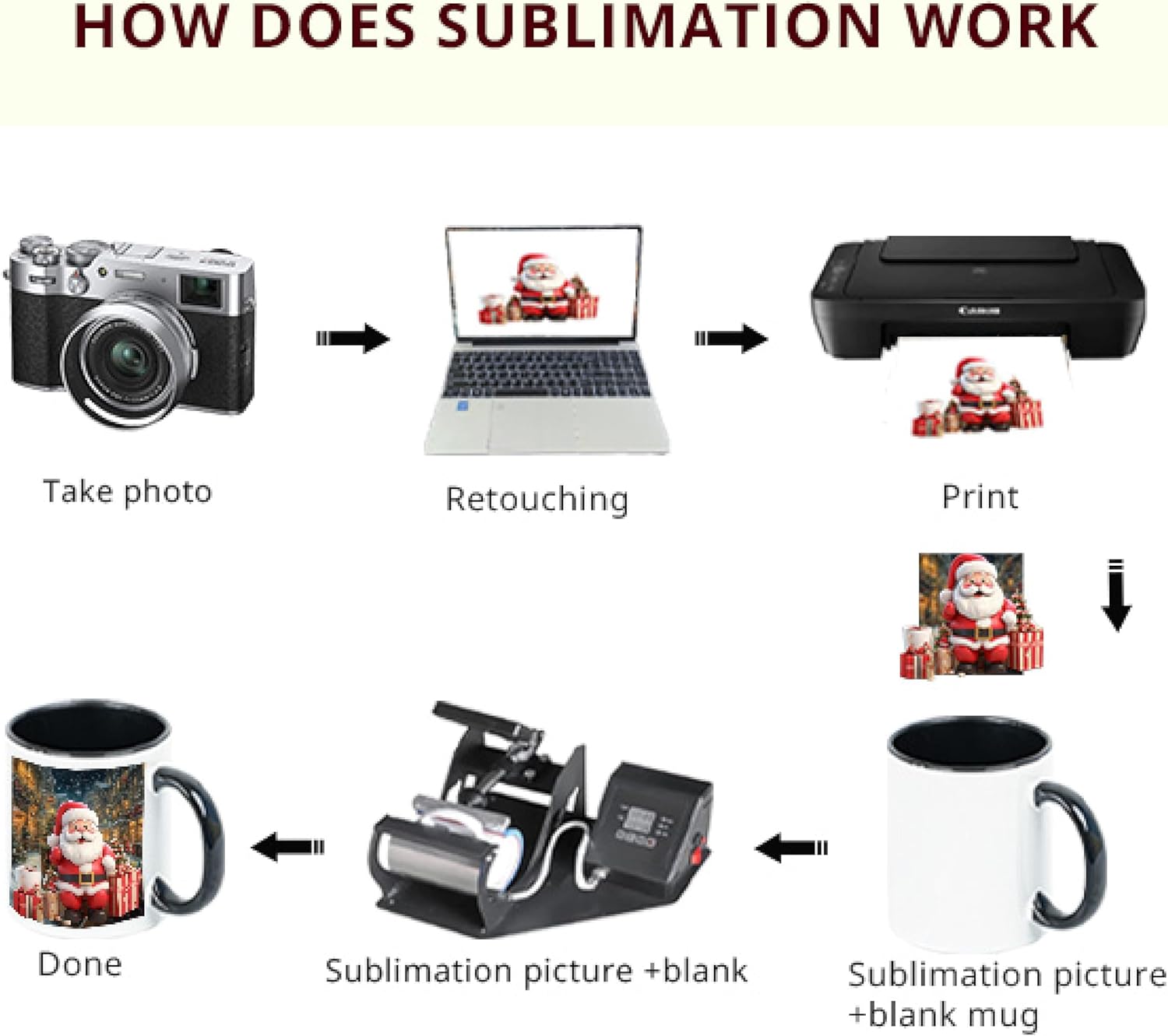 - [Customize Mugs] These Sublimation Coffee Mugs are customized for various DIY creativities, you can print anything on it through heat press! Perfect for creating photo mugs, graduation gifts, weddings, personal keepsakes, artwork showcasing, and any creative job you may want with your wrap heat press machine