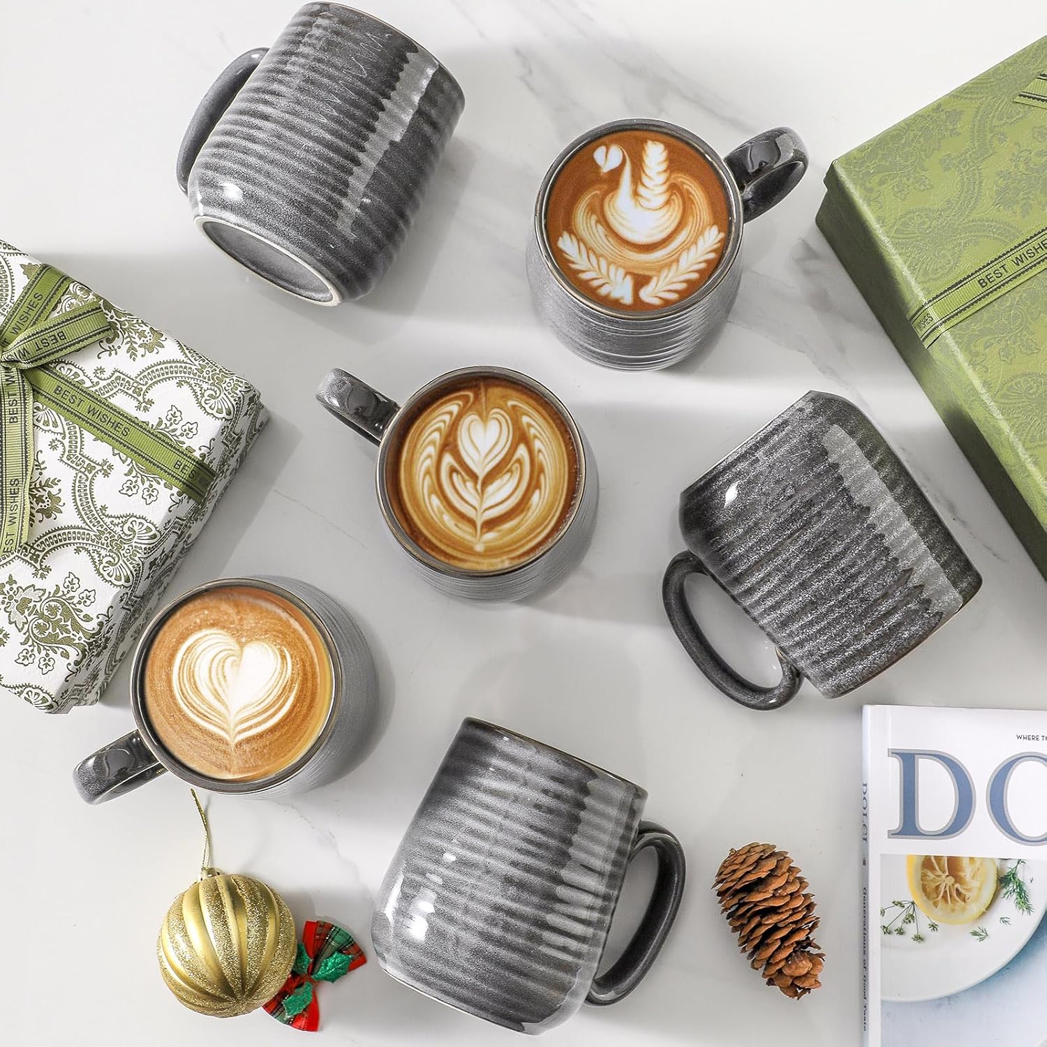 Hasense Ceramic Coffee Mugs Set of 6, Large Coffee Cups 12 oz, Latte Mug with Large Handle for Coffee, Tea, Milk and Hot Cocoa, Easy Hold & Clean, Dishwasher & Microwave Safe, Grey
