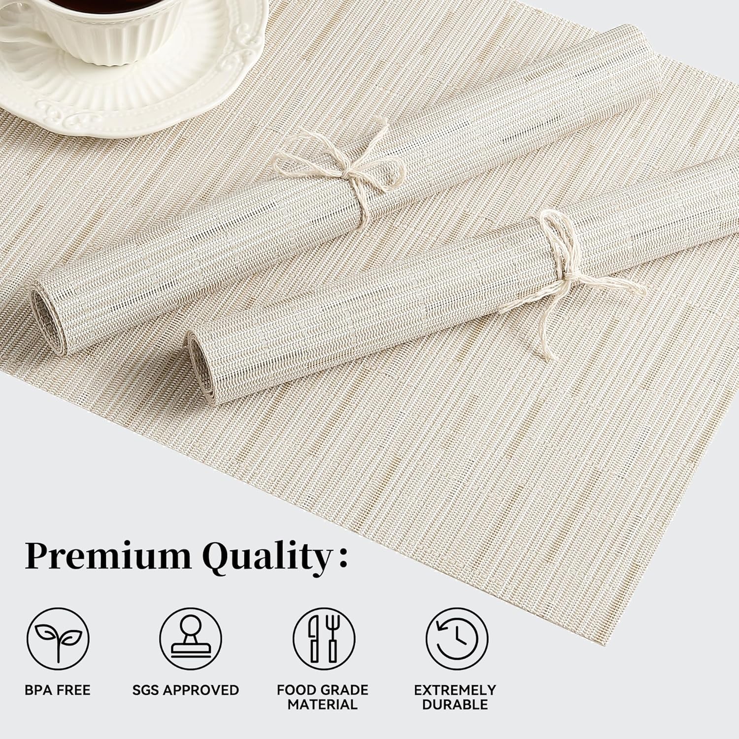 Leetaltree Pale Beige Placemats Set of 4 - Heat Resistant Non-Slip Place mats for Dining Table, Washable Durable PVC Vinyl Woven Table Mats(Pale Beige, 4)
