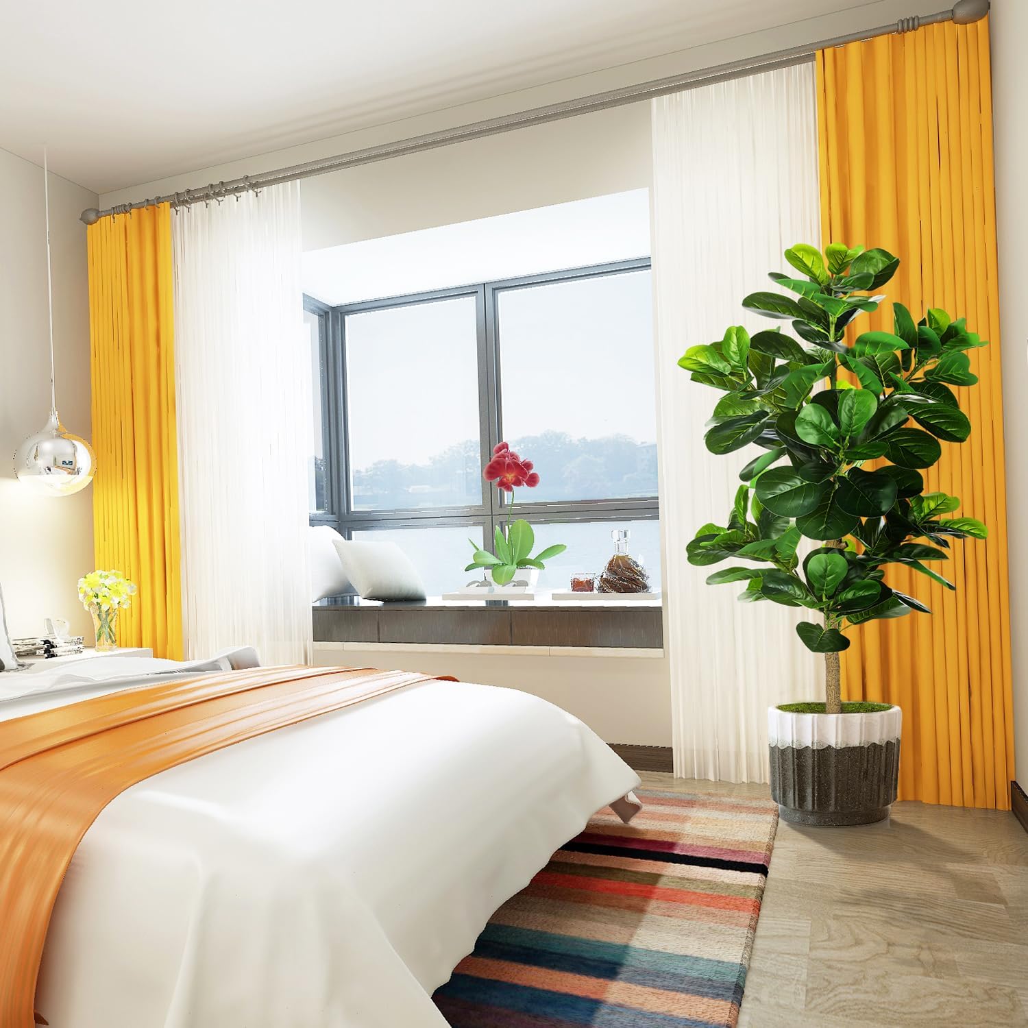 - 【STURDY AND ADJUSTABLE】 Our fig tree outfitted with inner metal wires, you can adjust the leaves to the shape you like. This artificial plant will maintain its height, color and shape for years without pruning and shaping to ensure the aesthetic is maintained.