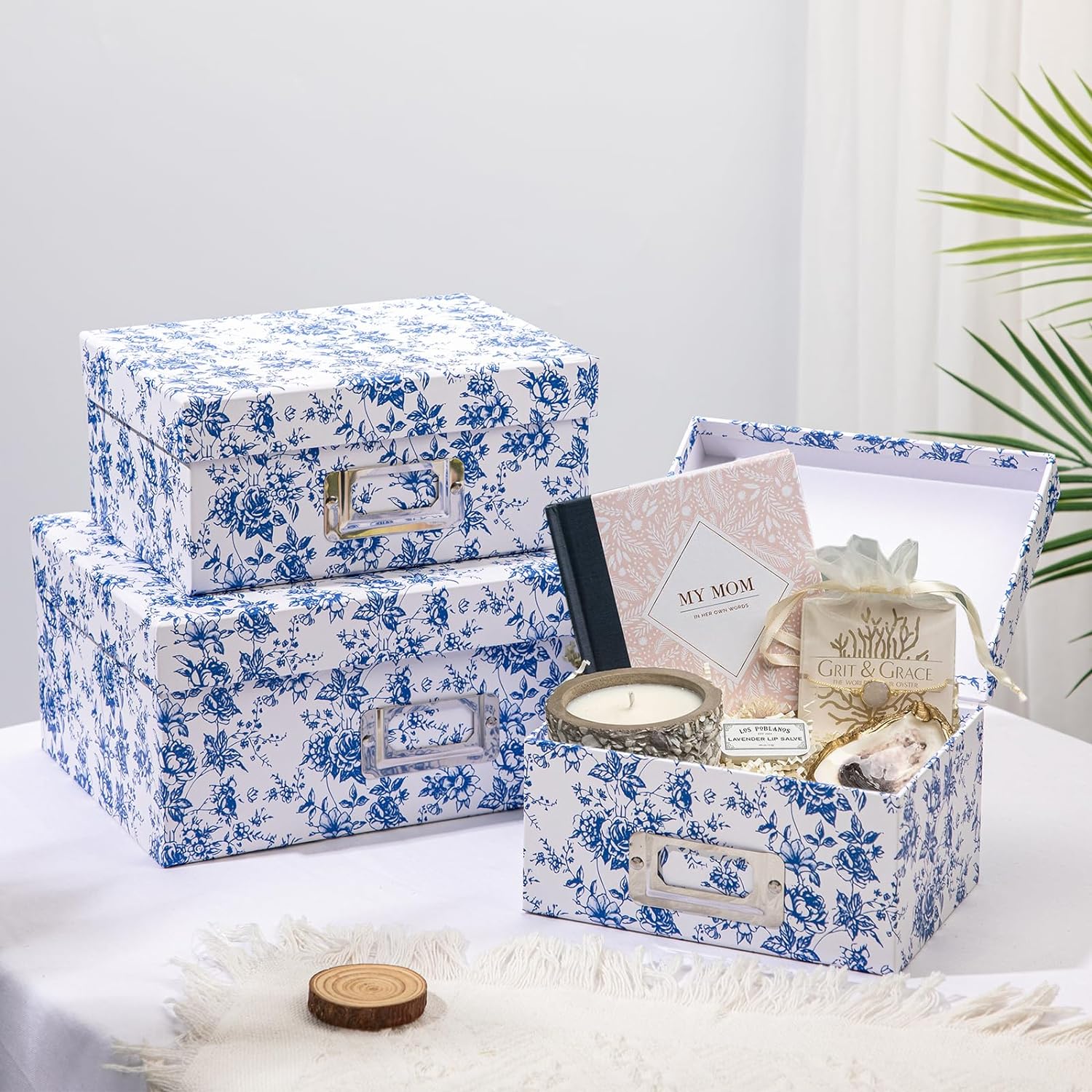 - BLUE AND WHITE NESTING BOXES: The set includes multiple boxes that nest within each other, allowing for easy storage and saving space when not in use. You can use them individually or stack them up to create an elegant display.