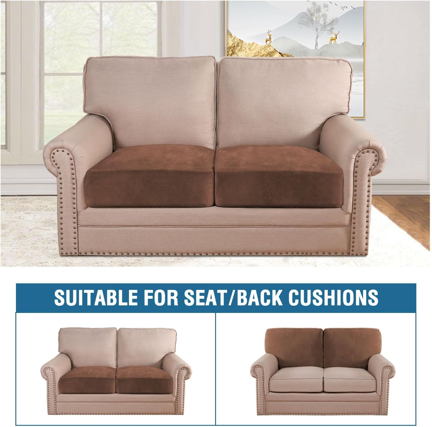 - STAY IN PLACE: Featuring non-skid thick elastic bottom, our cushion slipcover can stay tight with no snag, no wrinkling, shifting or slipping on both leather and cloth sofa. Check the installation guide carefully, it can be finished within 3 minutes by one person. It is very easy to put on and take down. (Installation Instructions Included)