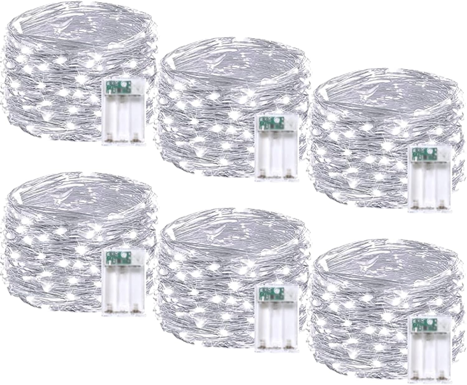 6 Pack Fairy Lights Battery Operated with Timer, Each 20FT 60LED Christmas String Lights Outdoor Indoor, Cuttable Battery Twinkle Light for Bedroom Home Wedding DIY Christmas Decorations (Cool White)