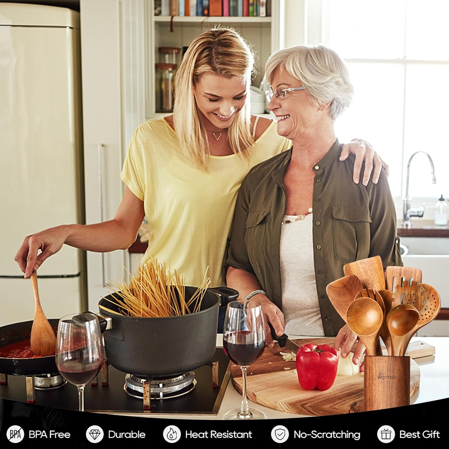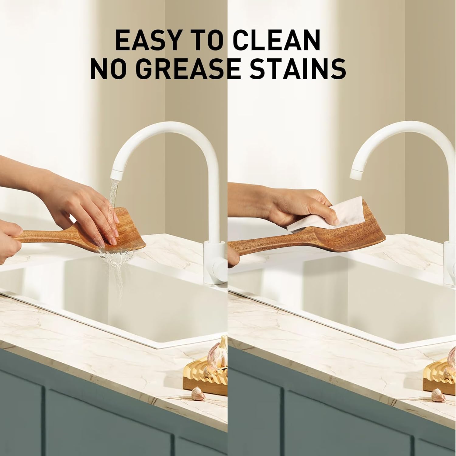- Wooden Utensil Holder: Our wooden spoon comes with a Wooden Utensil Holder, a unique feature that sets it apart from other products on the market. The holder even has a leak hole at the bottom to prevent water accumulation